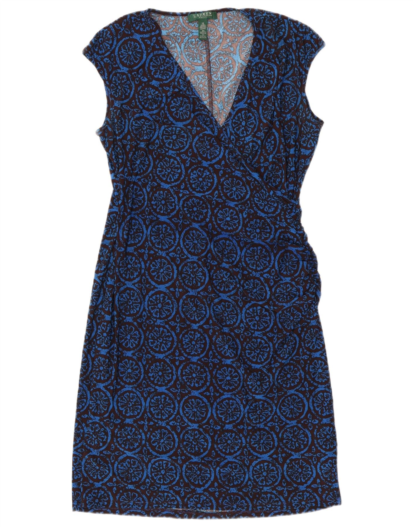 RALPH LAUREN Womens Sleeveless Sheath Dress US 12 Large Blue Floral