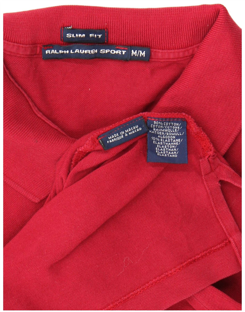 RALPH LAUREN Womens Slim Fit Polo Shirt UK 12 Medium Red Cotton