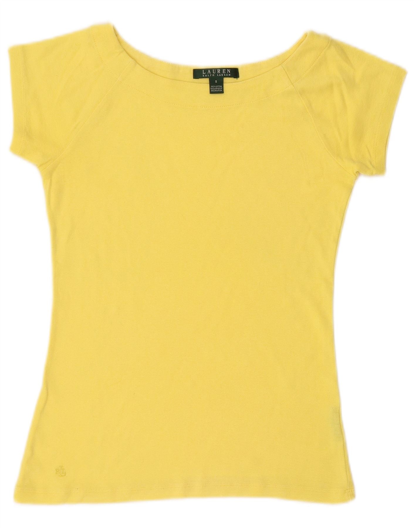 RALPH LAUREN Womens T-Shirt Top UK 10 Small Yellow Cotton