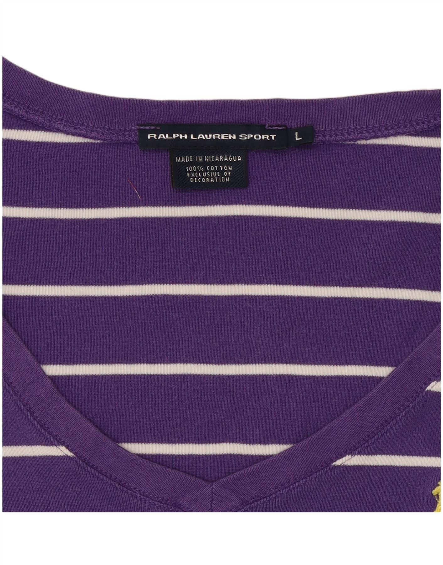 RALPH LAUREN Womens T-Shirt Top UK 14 Large Purple Striped Cotton