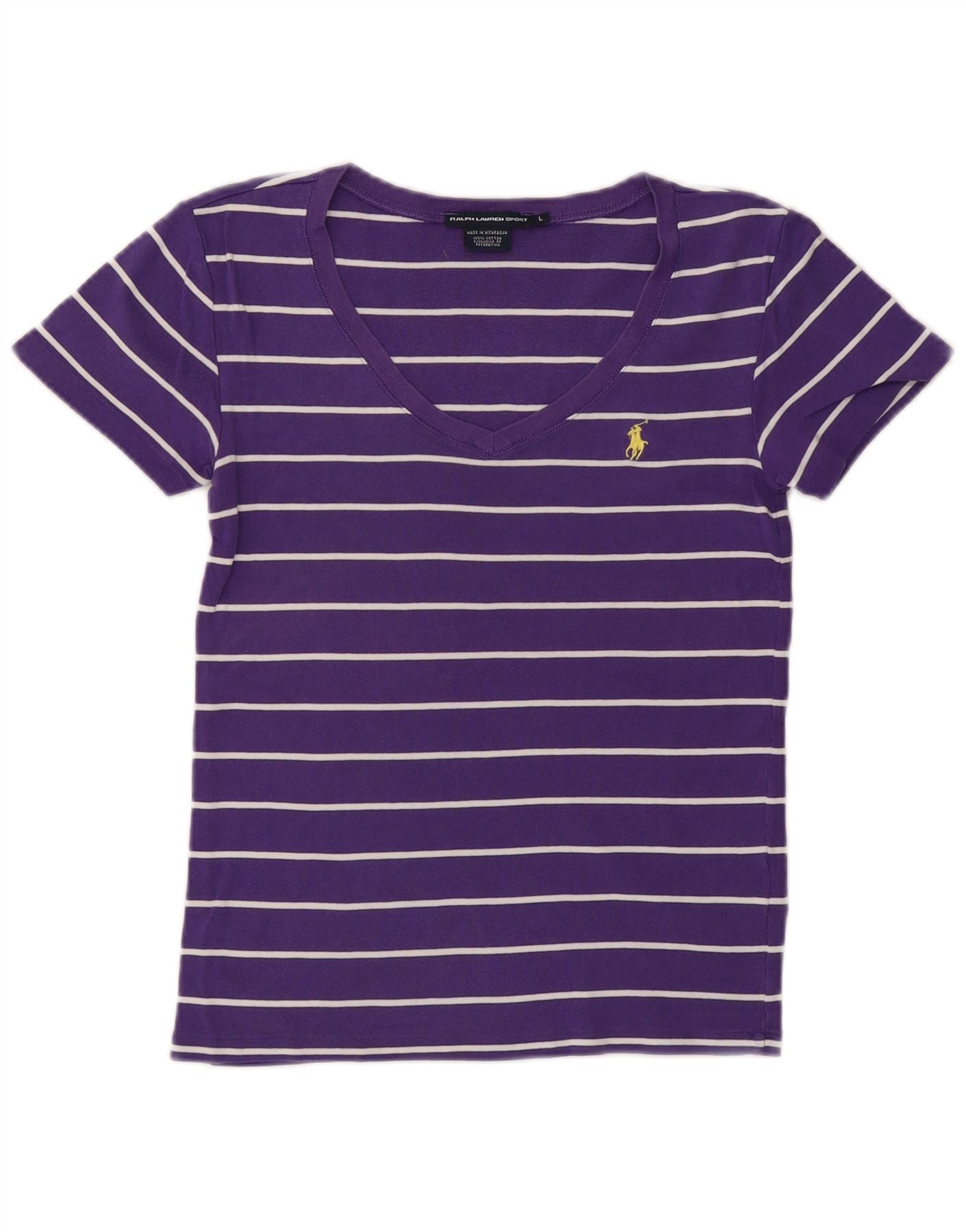 Home > Ralph Lauren > Women's > Shirts > RALPH LAUREN Womens T-Shirt Top UK 14 Large Purple Striped Cotton