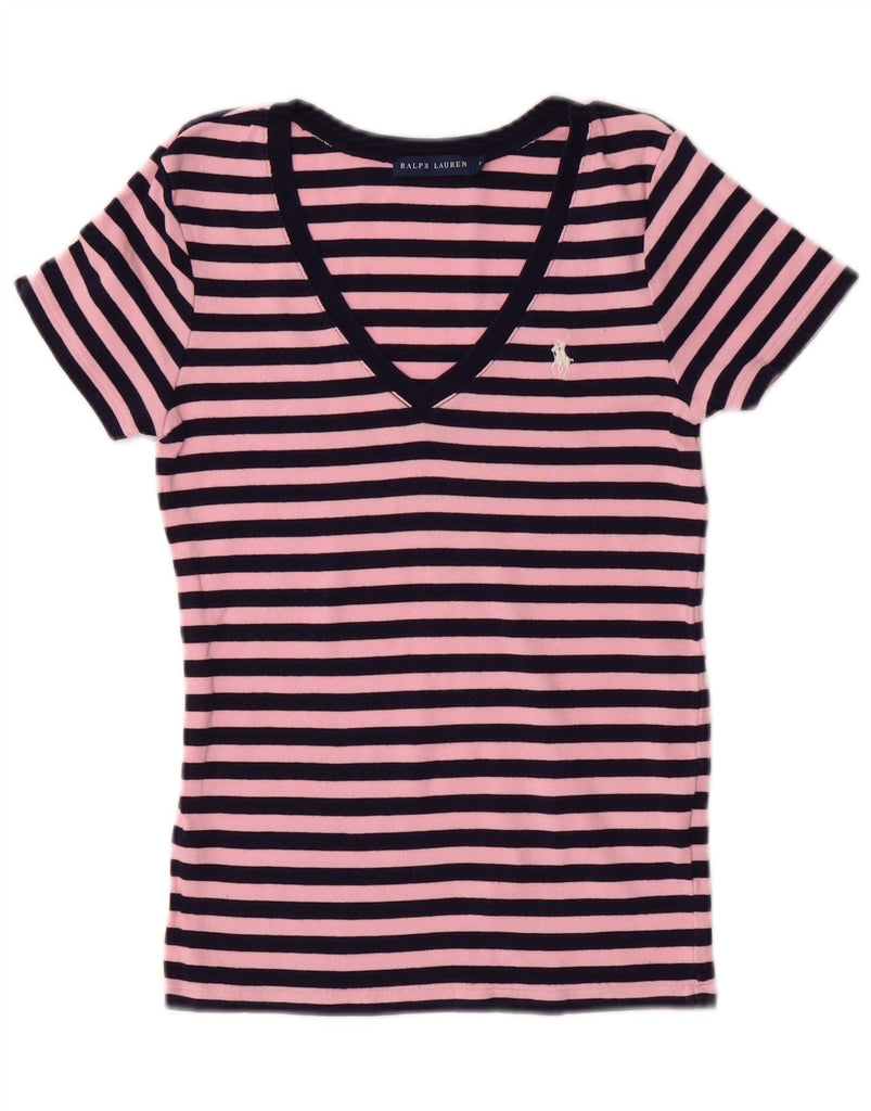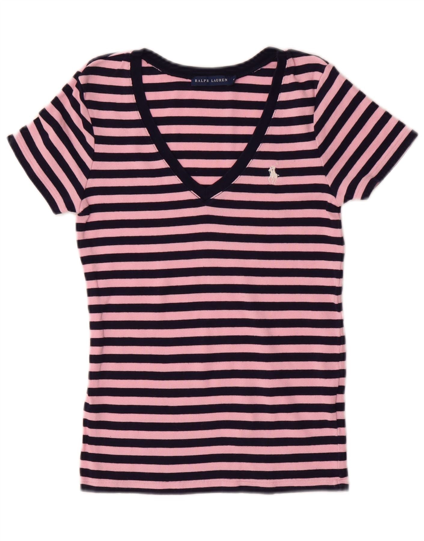 RALPH LAUREN Womens T-Shirt Top UK 8 Small Pink Striped Cotton