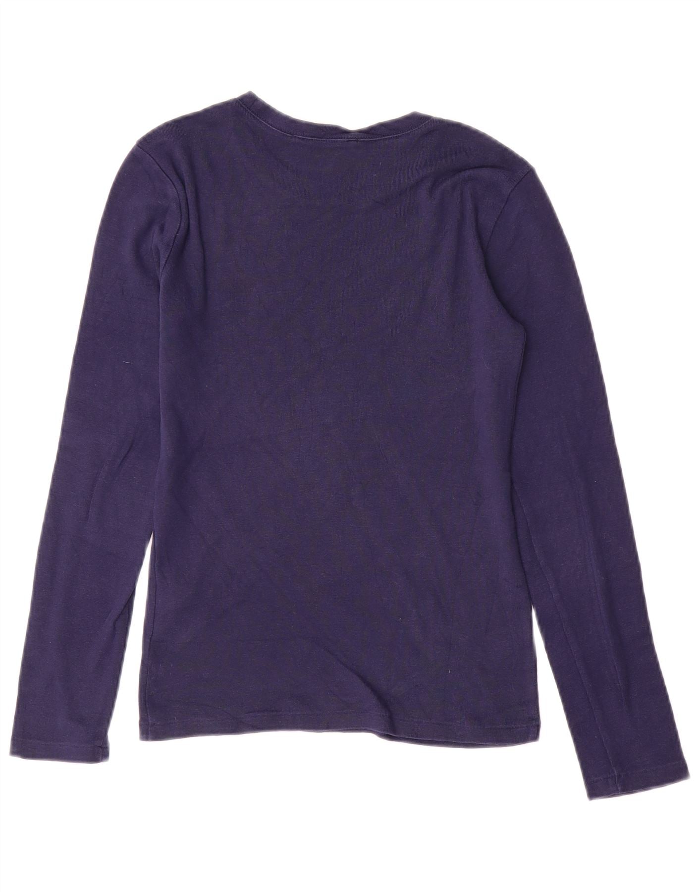 RALPH LAUREN Womens Top Long Sleeve UK 10 Small Navy Blue Cotton