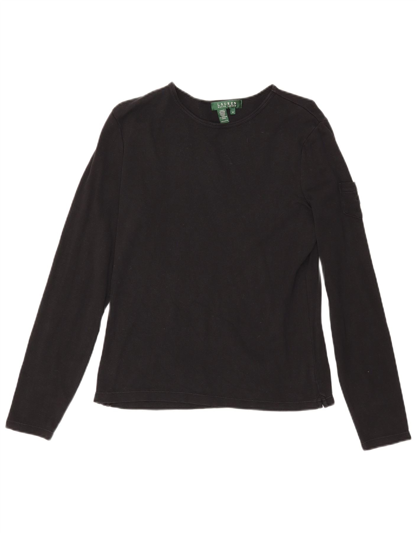 Ralph Lauren Womens Top Long Sleeve UK 14 Medium Black Cotton