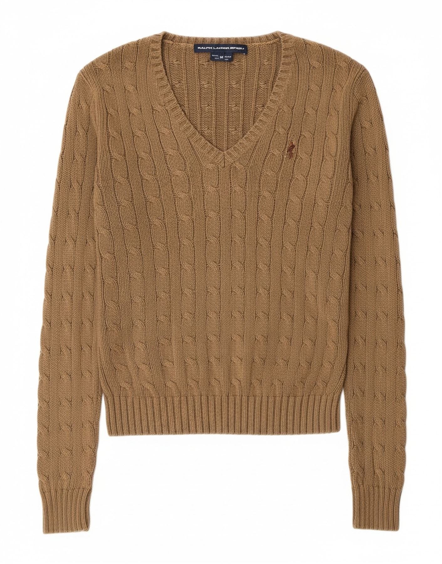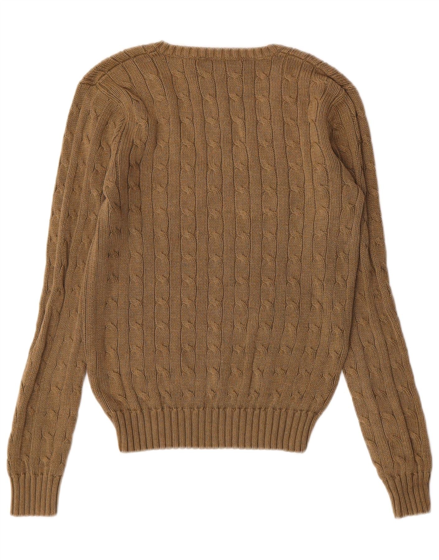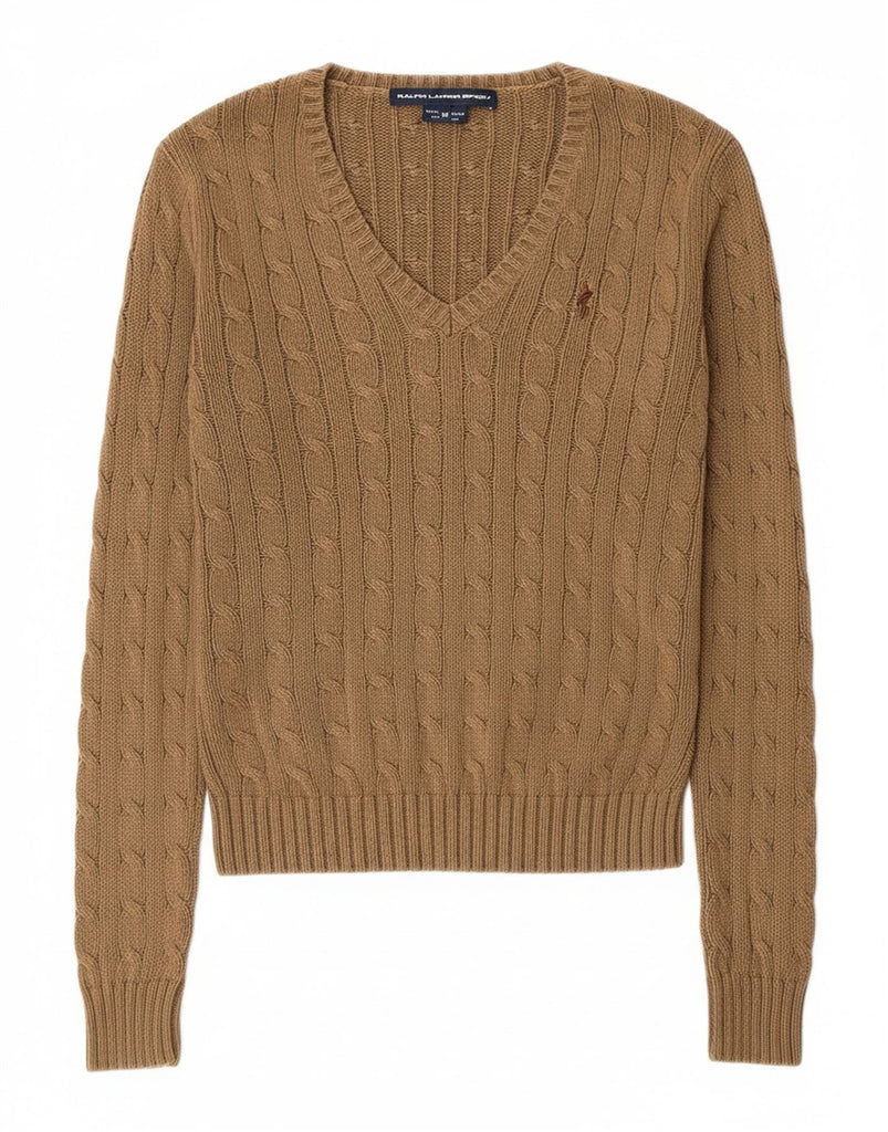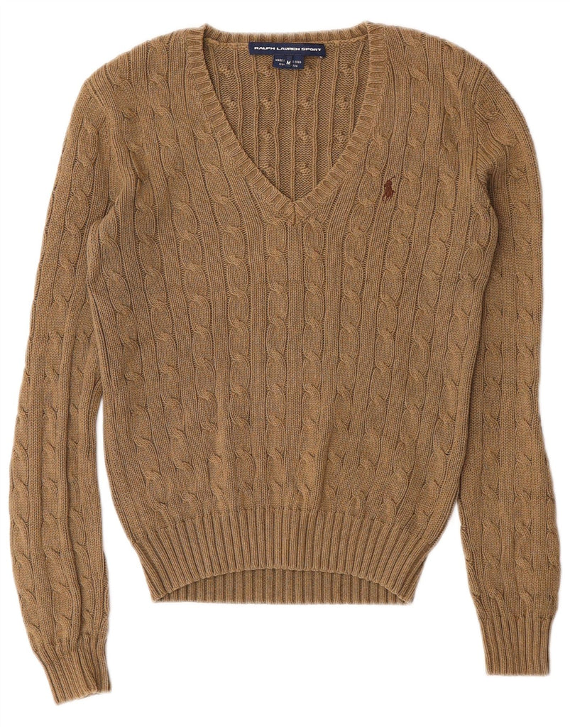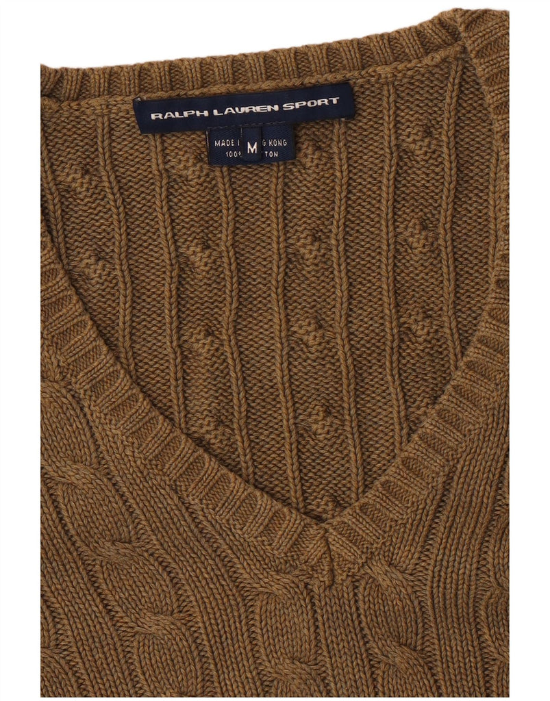 RALPH LAUREN Womens V-Neck Jumper Sweater UK 12 Medium Green Cotton