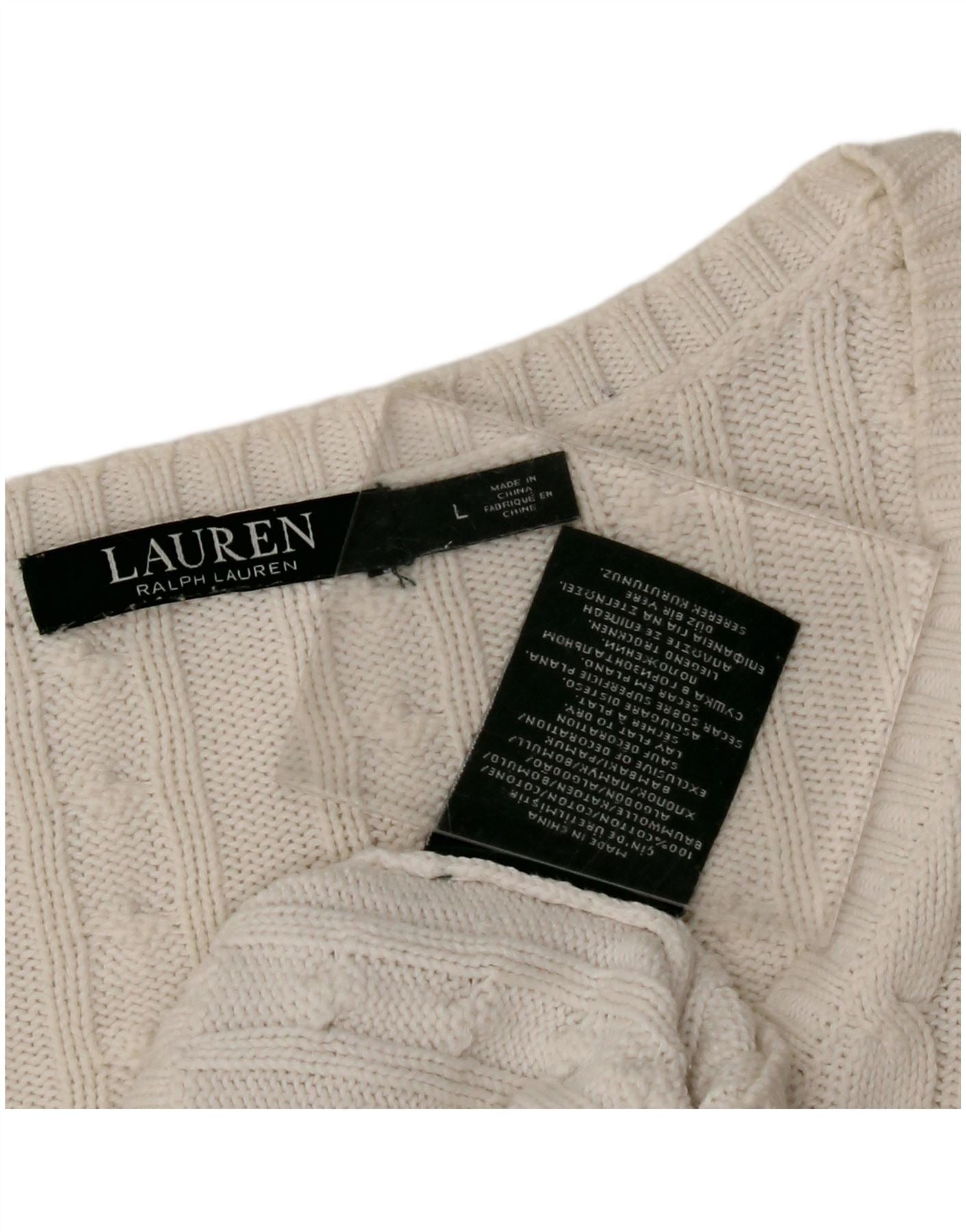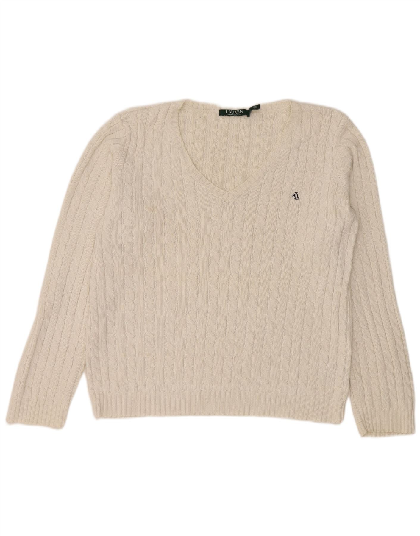 RALPH LAUREN Womens V-Neck Jumper Sweater UK 16 Large White Cotton