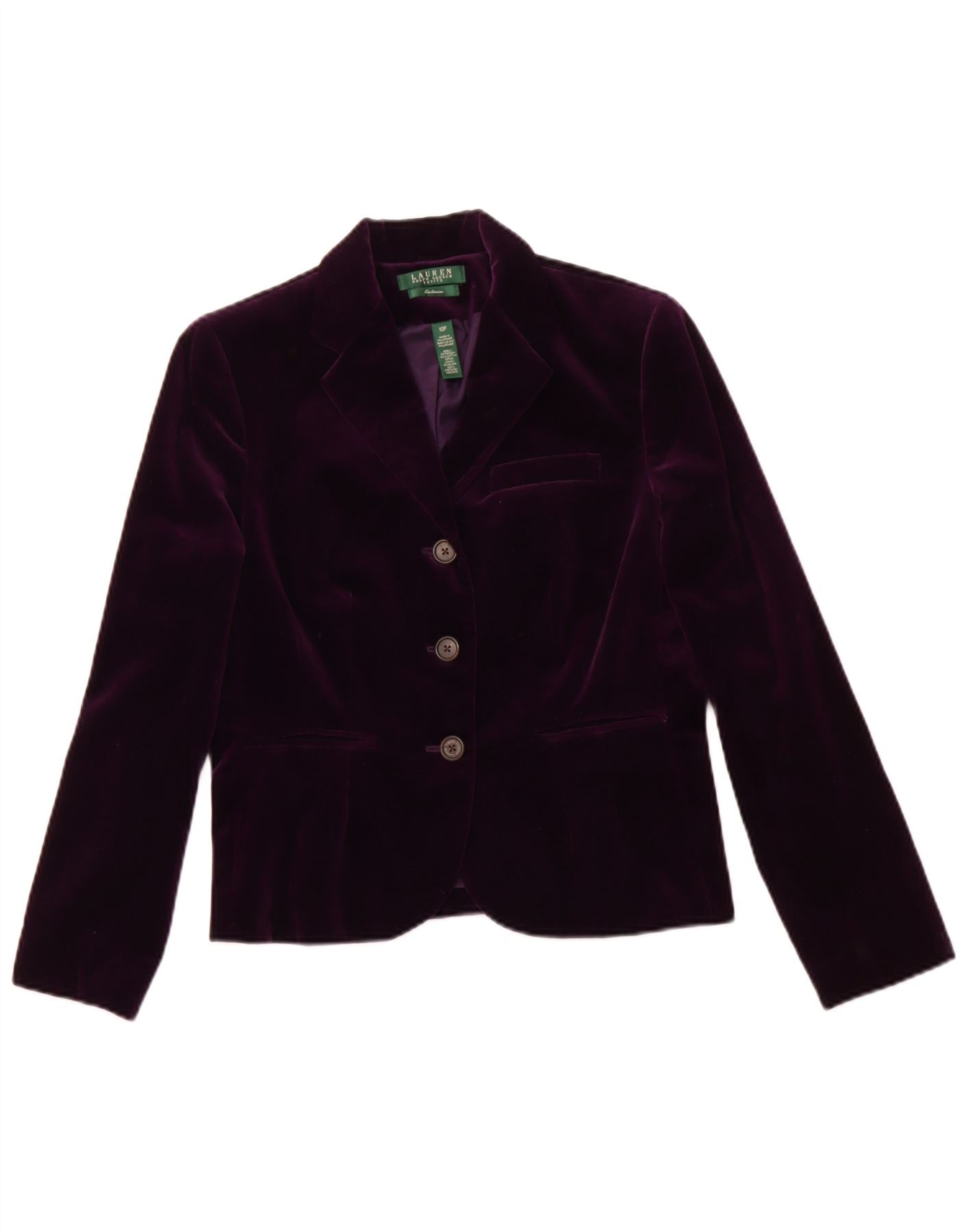 RALPH LAUREN Womens Velvet 3 Button Blazer Jacket UK 10 Small Purple