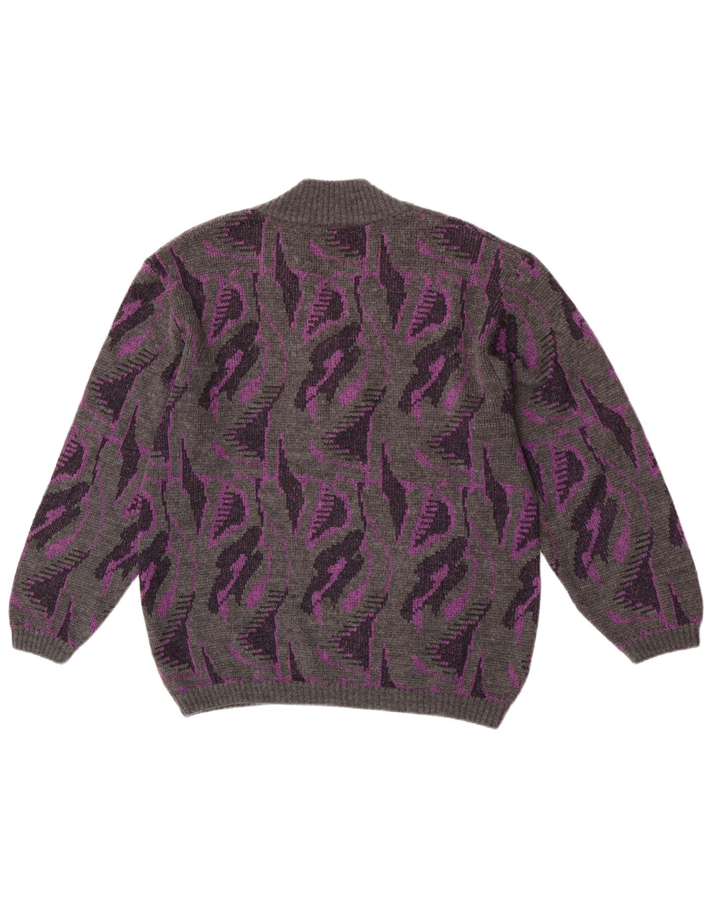 Rasica Womens Abstract Pattern V-Neck Jumper Sweater UK 16 Large Grey