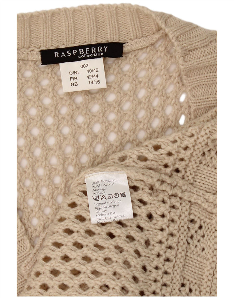 RASPBERRY Womens Longline Cardigan Sweater UK 14/16 Large Beige Classic