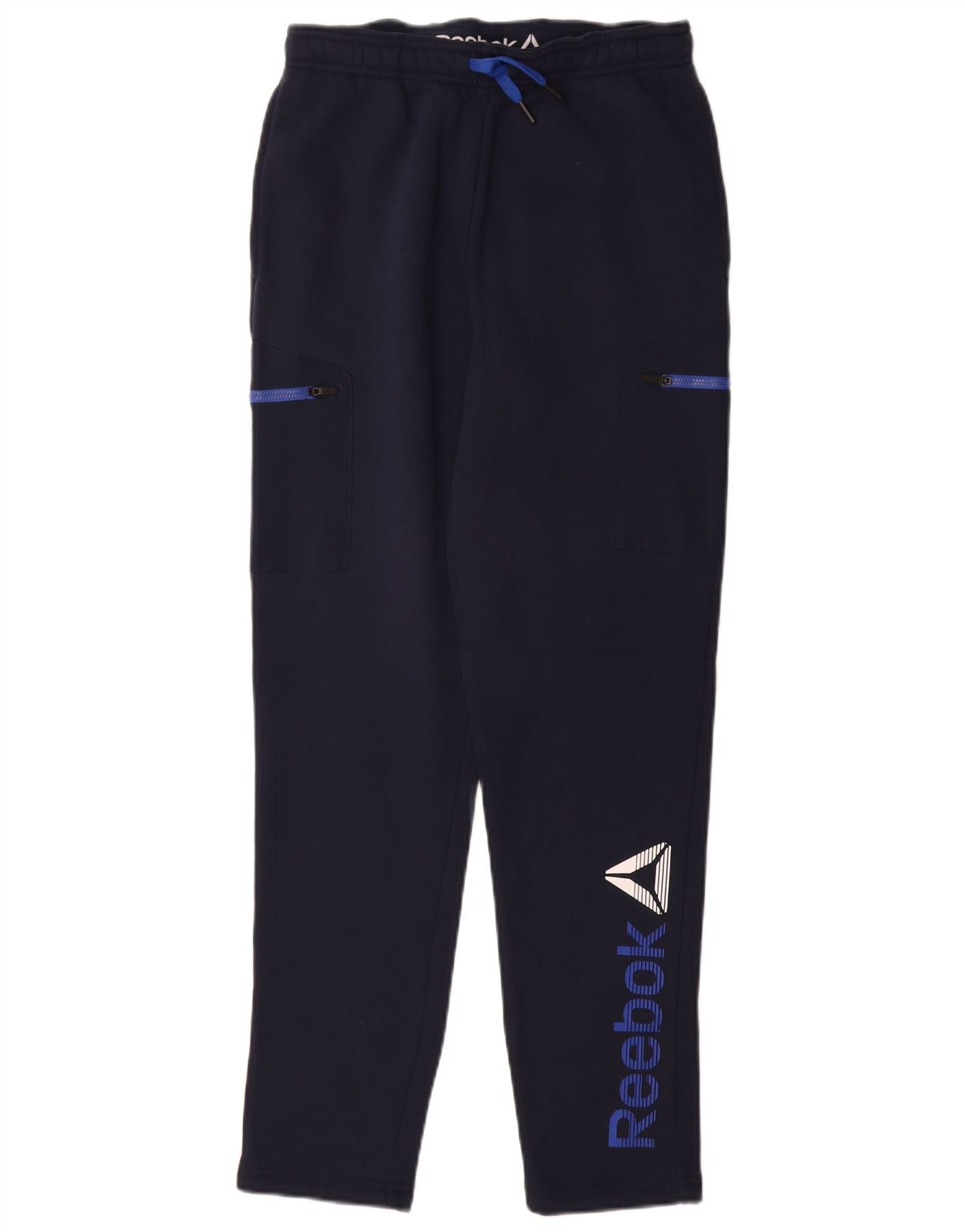 REEBOK Boys Graphic Tracksuit Trousers 15-16 Years 2XL Navy Blue Cotton