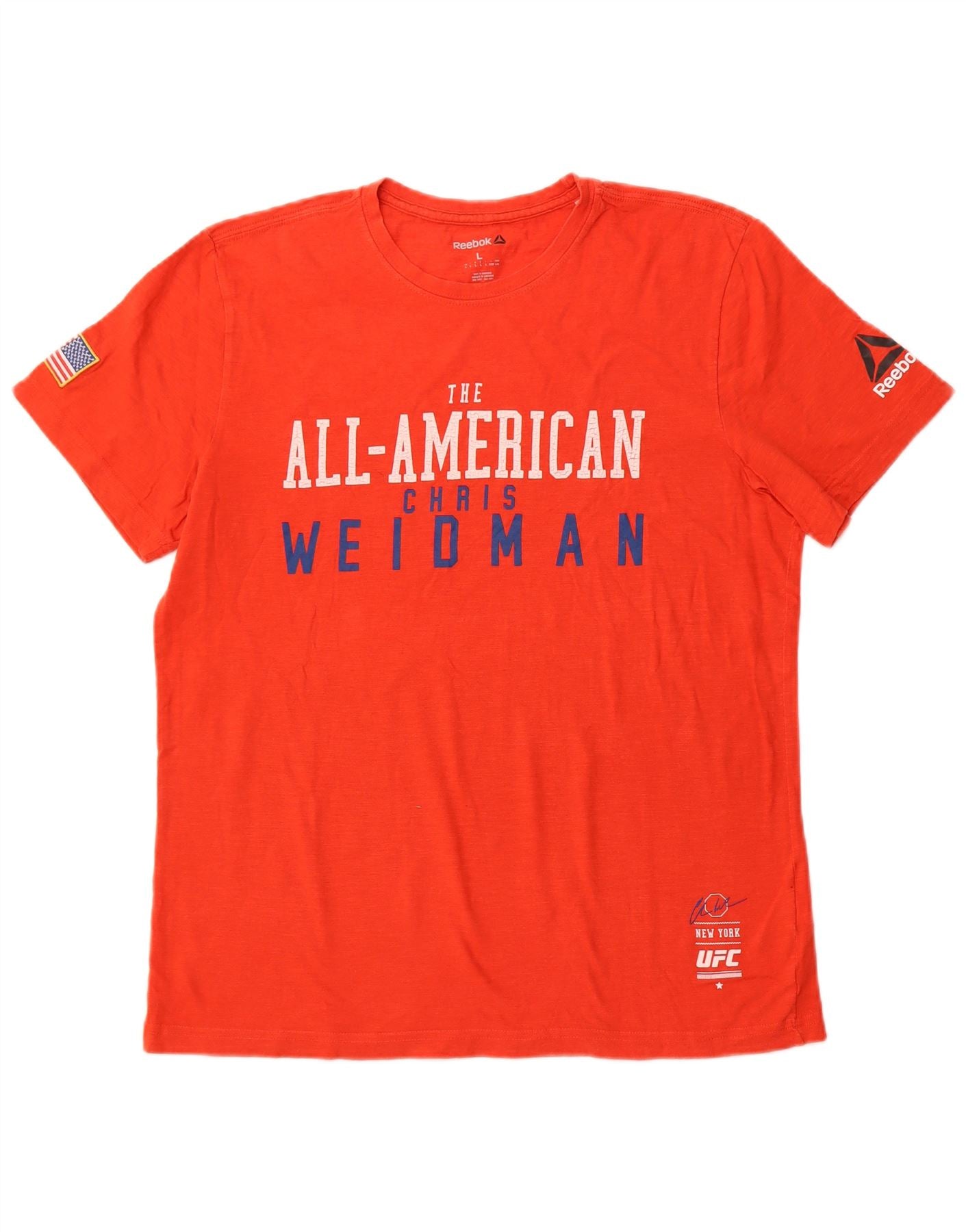 REEBOK Mens Graphic T-Shirt Top Large Orange Cotton