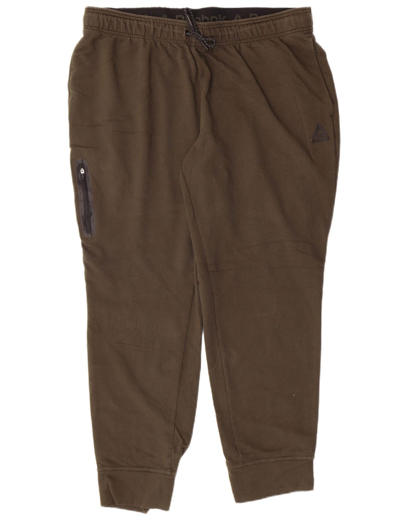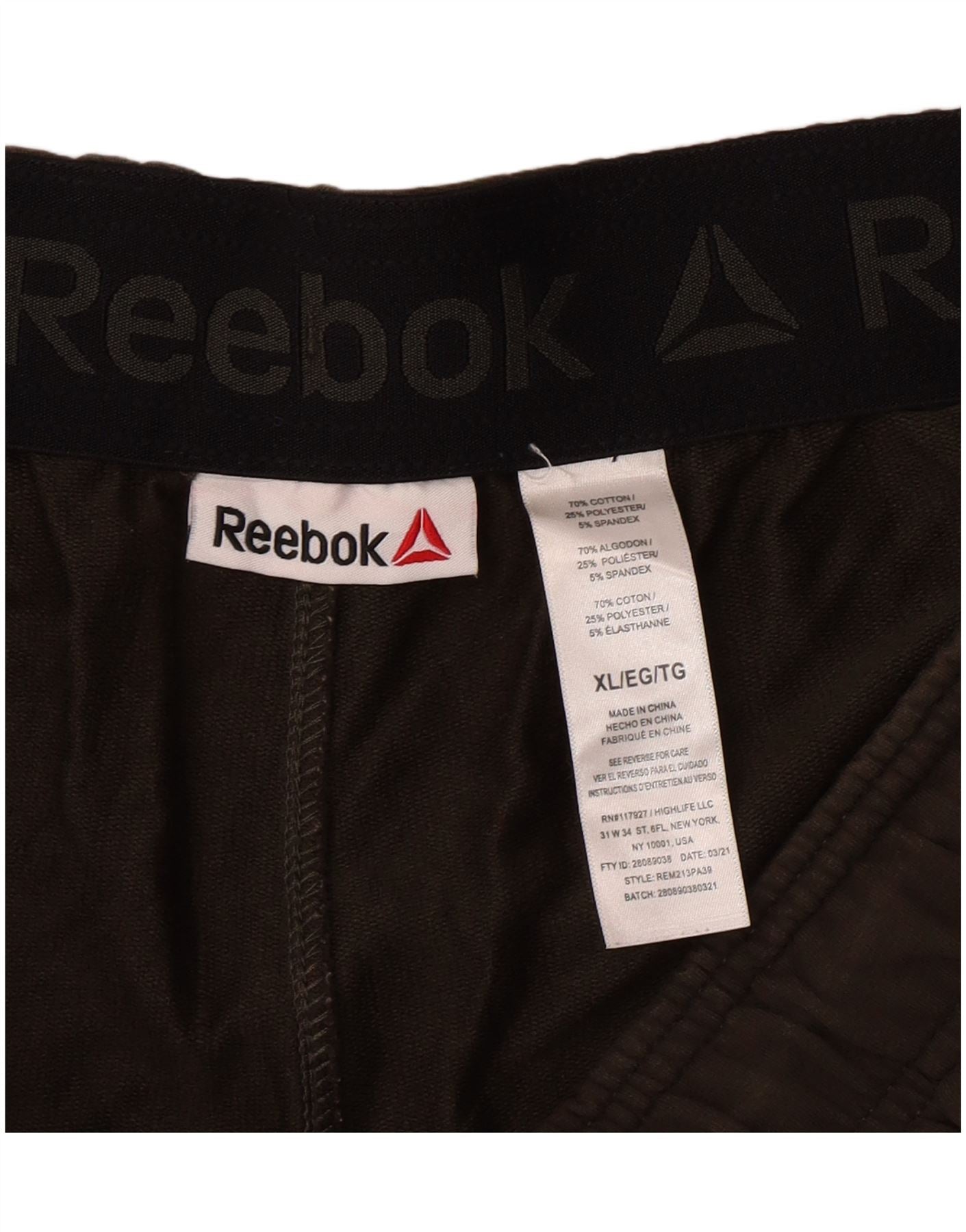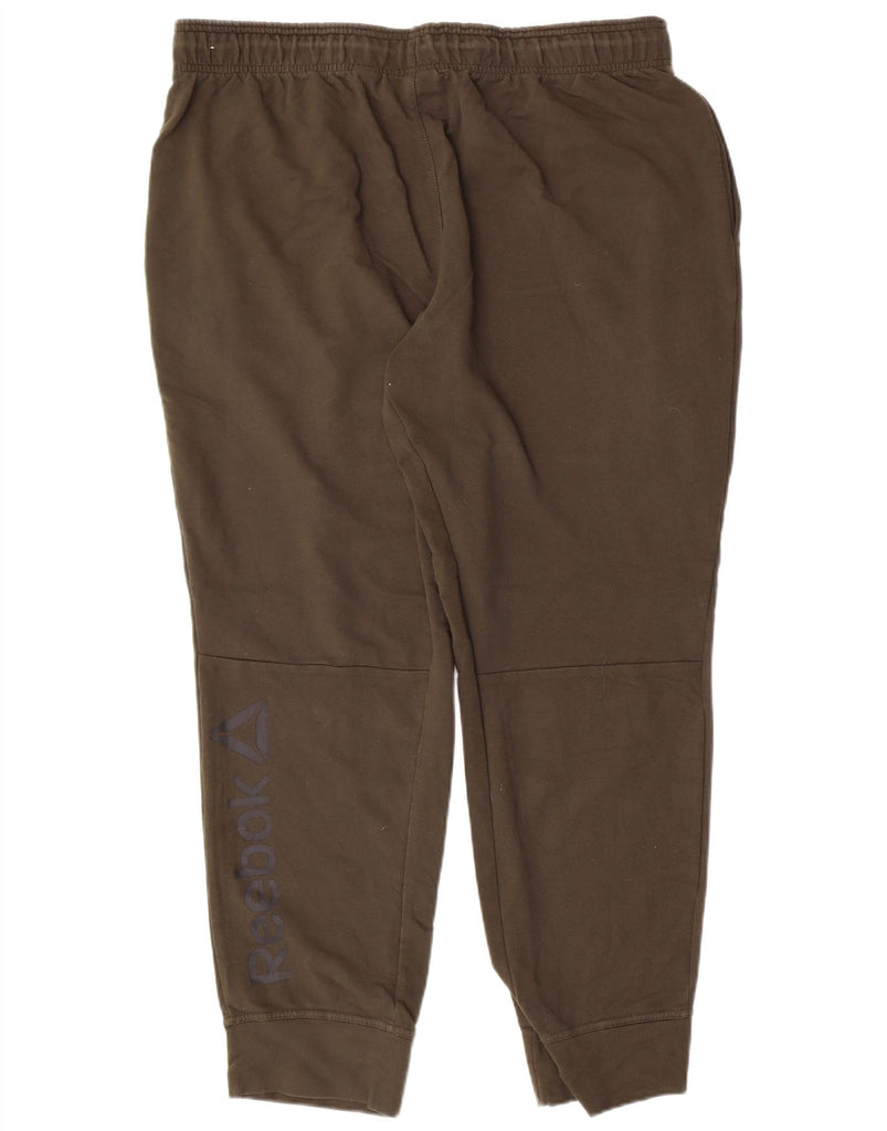 REEBOK Mens Graphic Tracksuit Trousers Joggers XL Khaki Cotton Sports