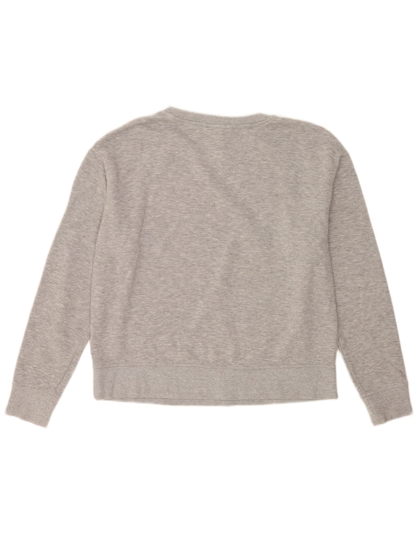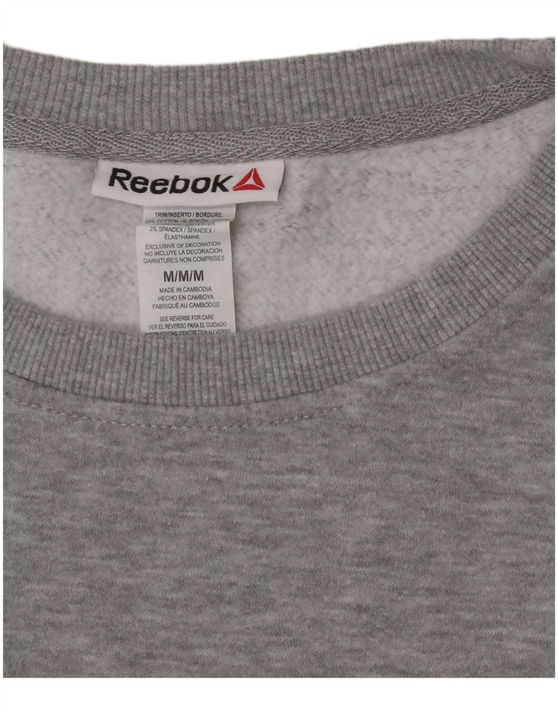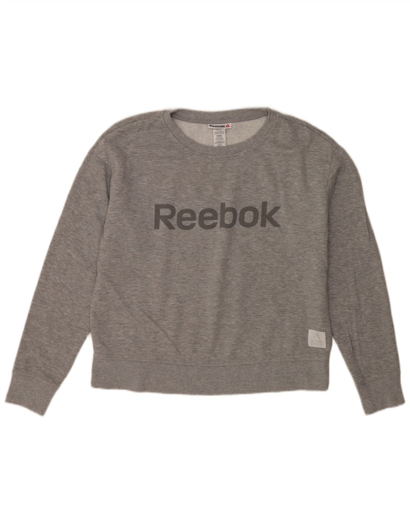 REEBOK Womens Crop Graphic Sweatshirt Jumper UK 14 Medium Grey Cotton