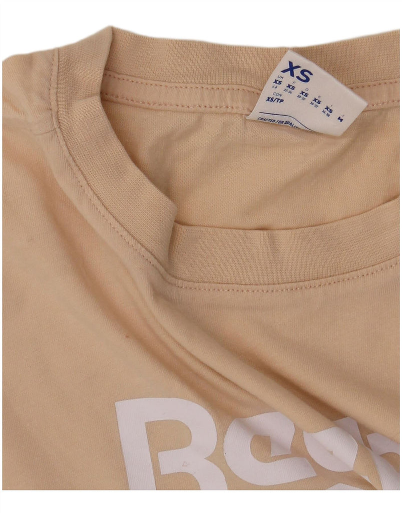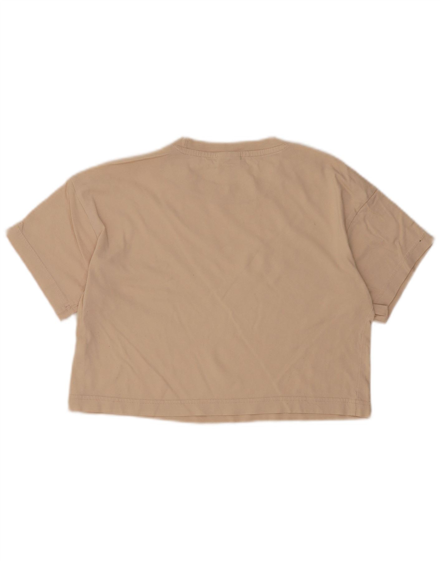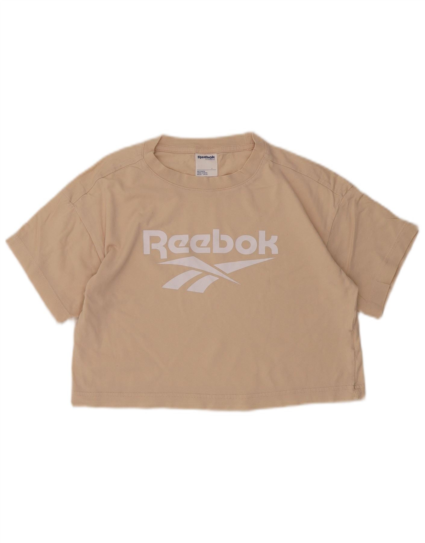REEBOK Womens Crop Oversized Graphic T-Shirt Top UK 4/6 XS Beige
