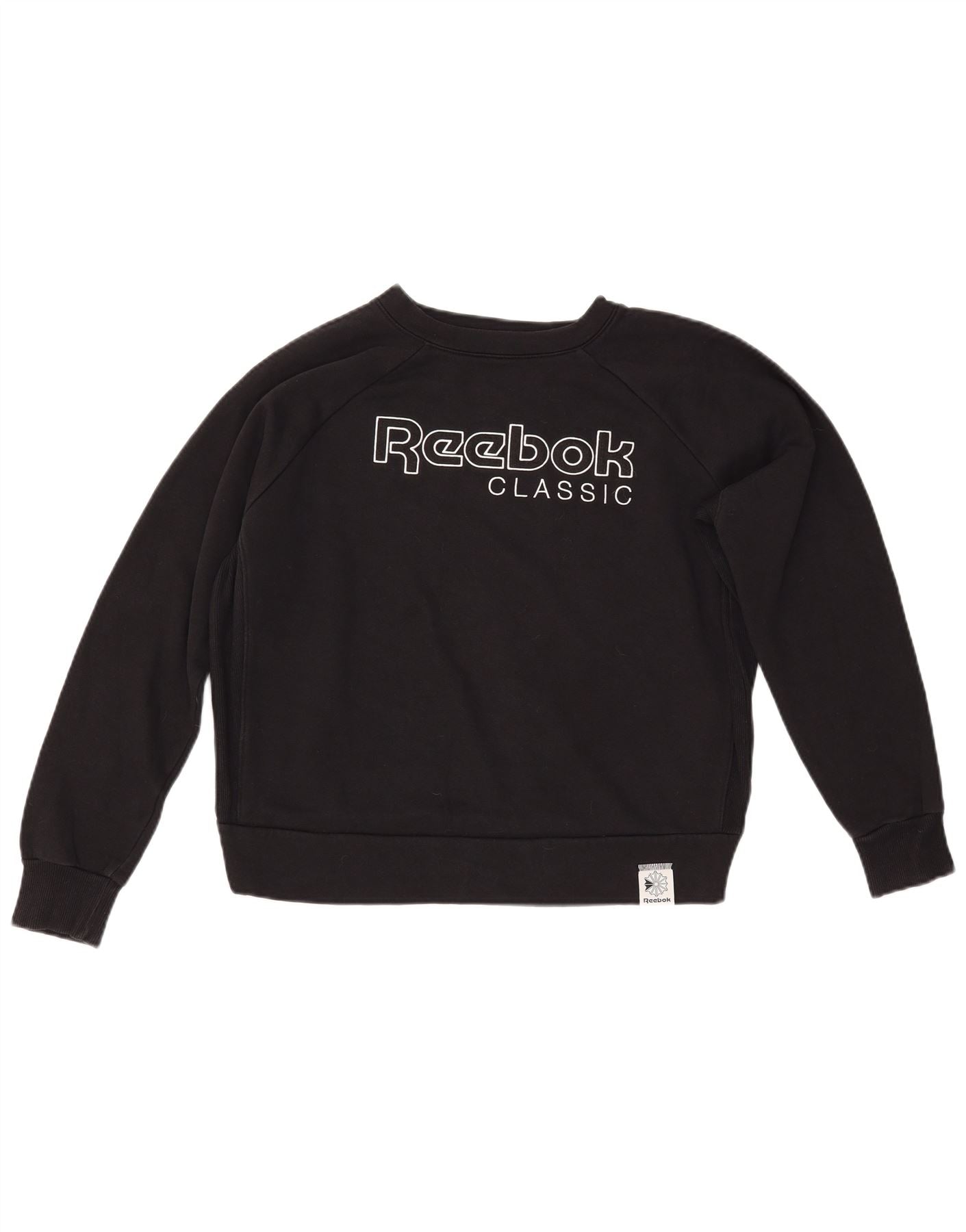 REEBOK Womens Graphic Sweatshirt Jumper UK 14 Medium Black Cotton