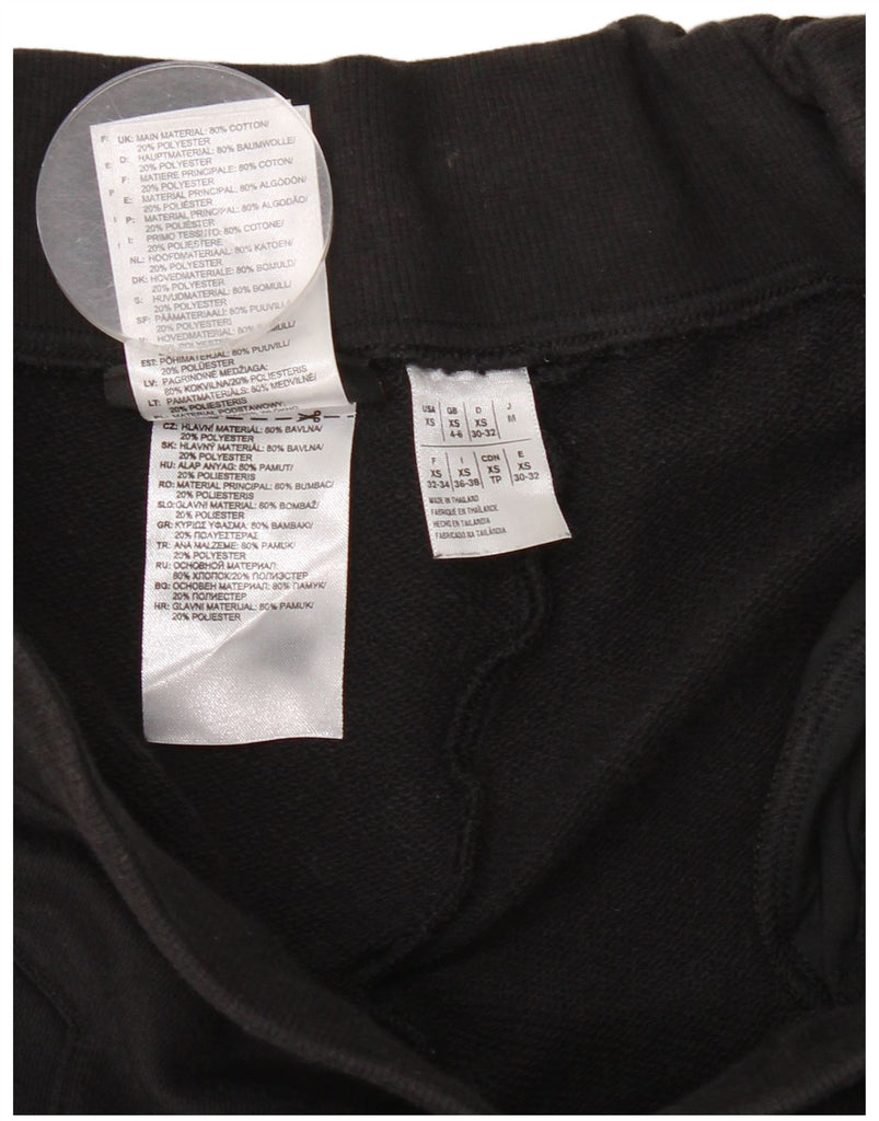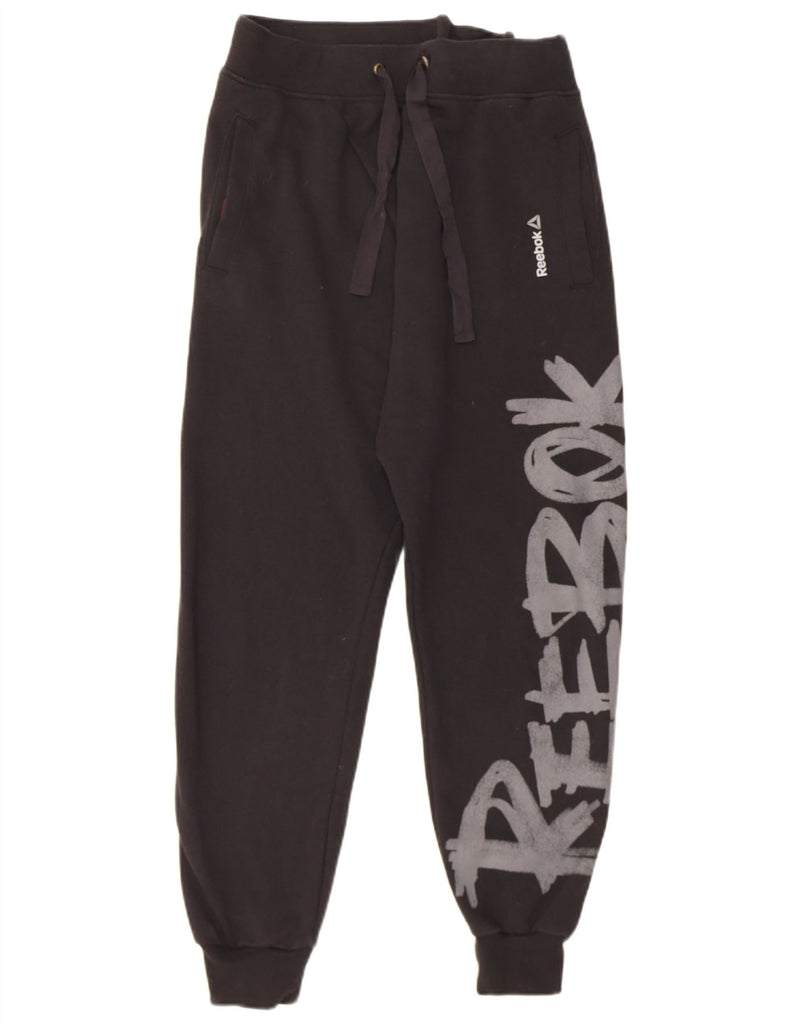 REEBOK Womens Graphic Tracksuit Trousers Joggers UK 4/6 XS Black Cotton