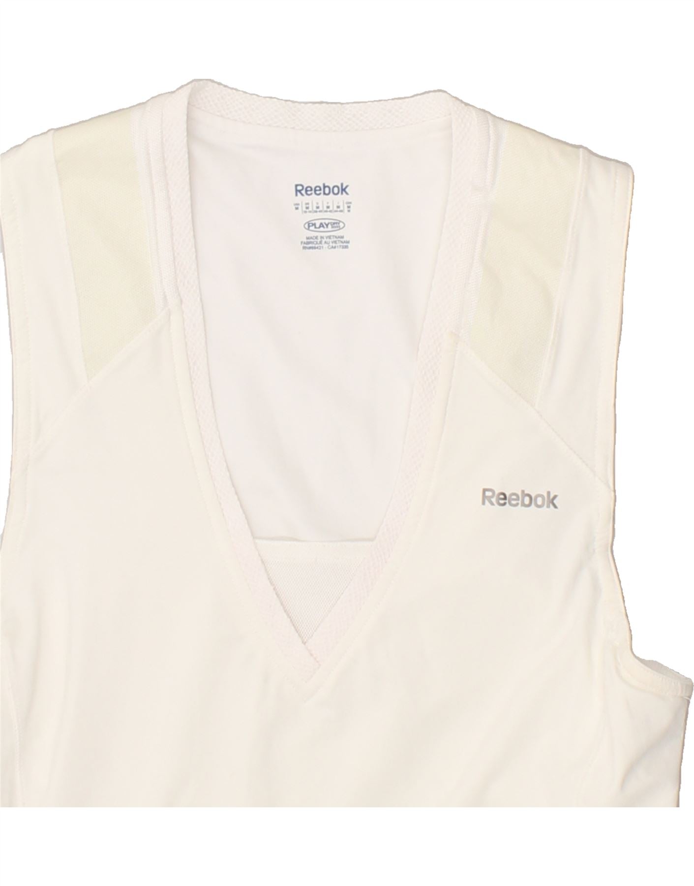 REEBOK Womens Graphic Vest Top UK 12 Medium White Polyester