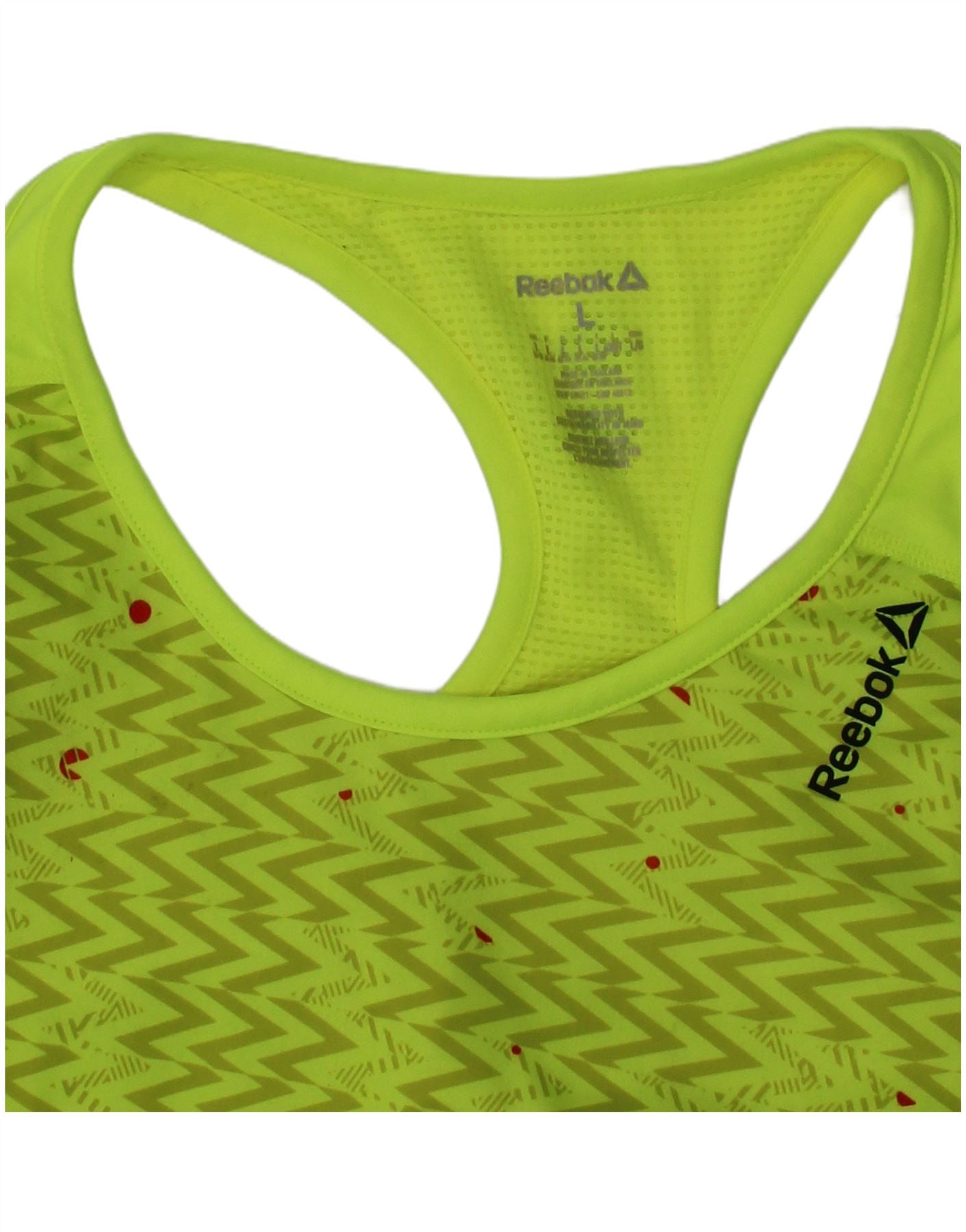 REEBOK Womens Graphic Vest Top UK 16/18 Large Green Geometric Sports