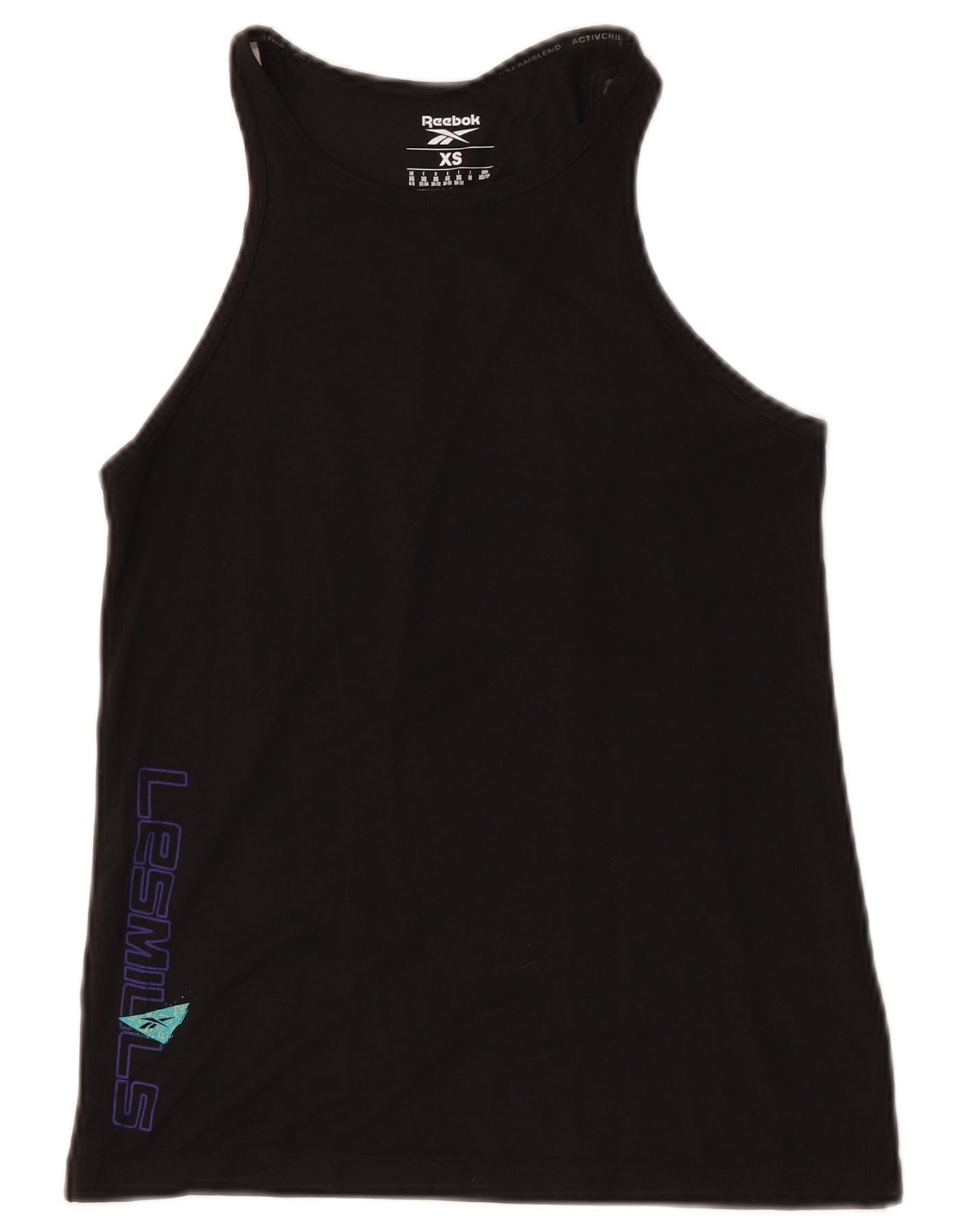REEBOK Womens Graphic Vest Top UK 4/6 XS Black
