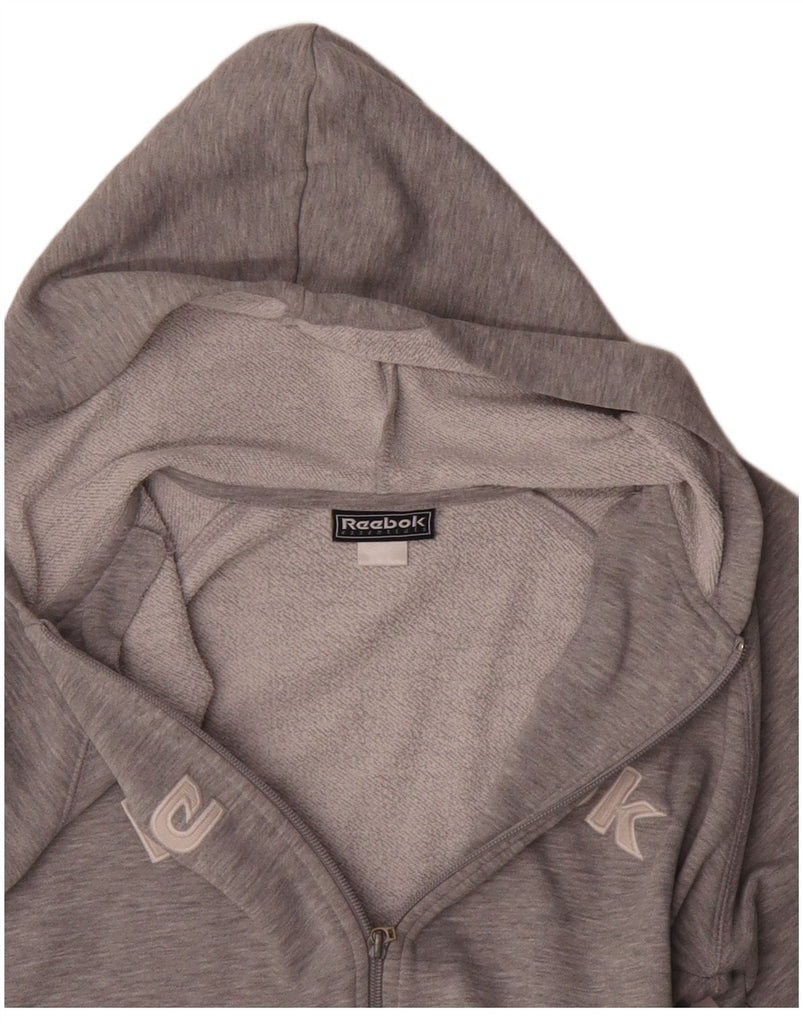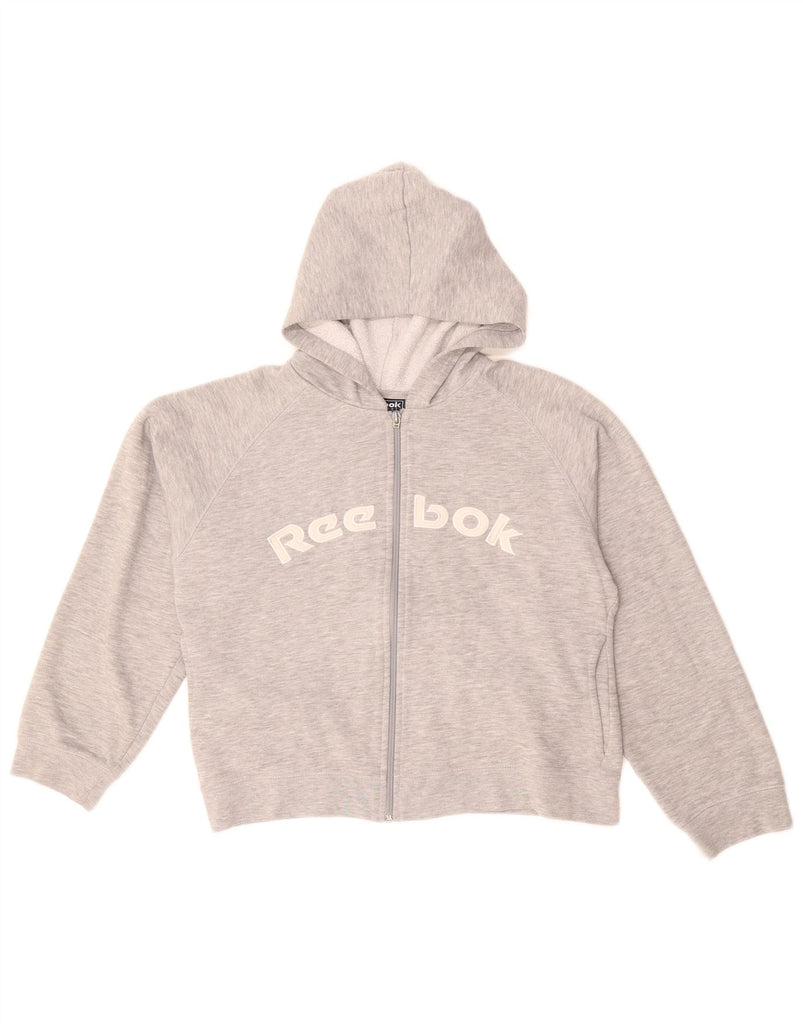 REEBOK Womens Oversized Graphic Zip Hoodie Sweater UK 10 Small Grey