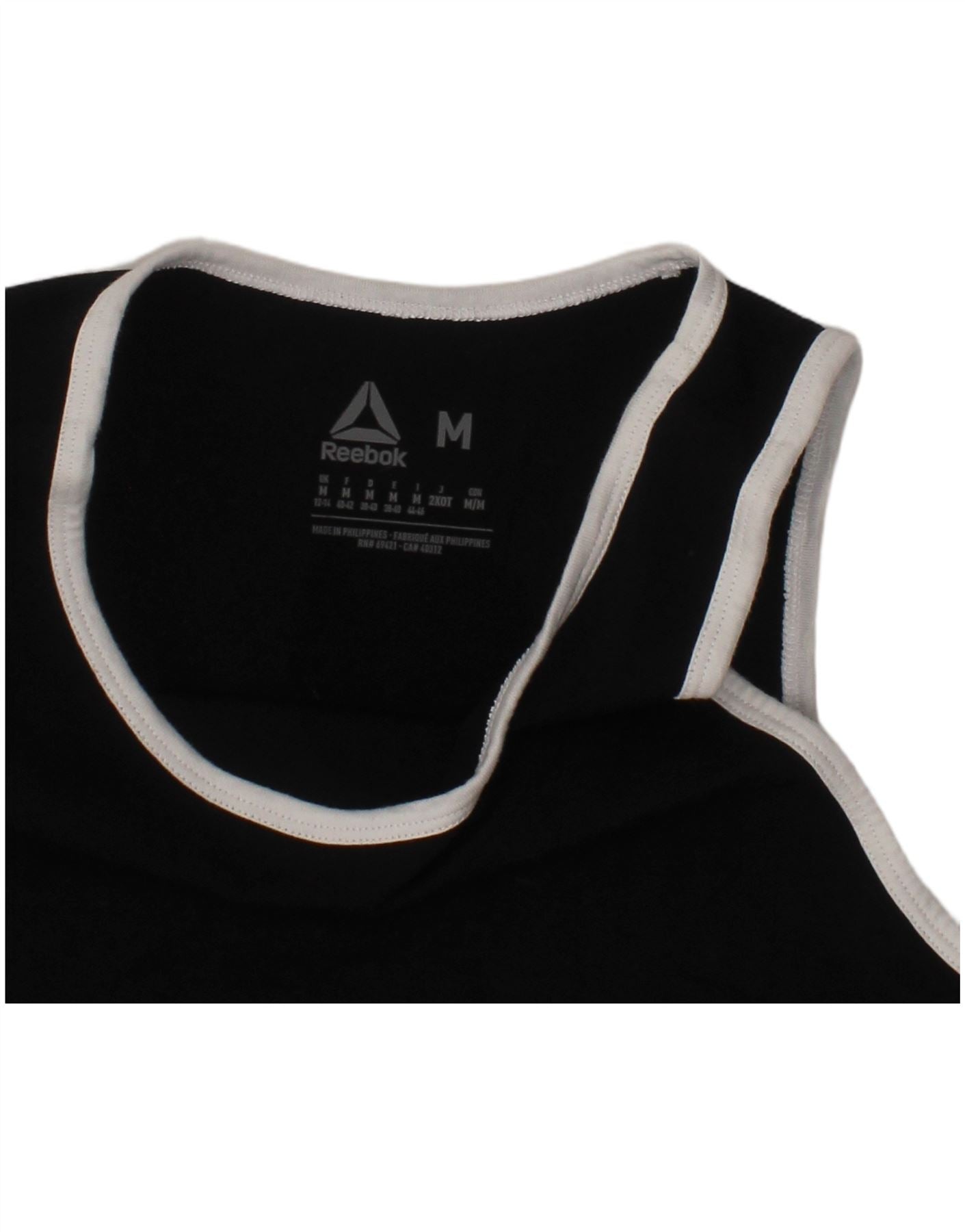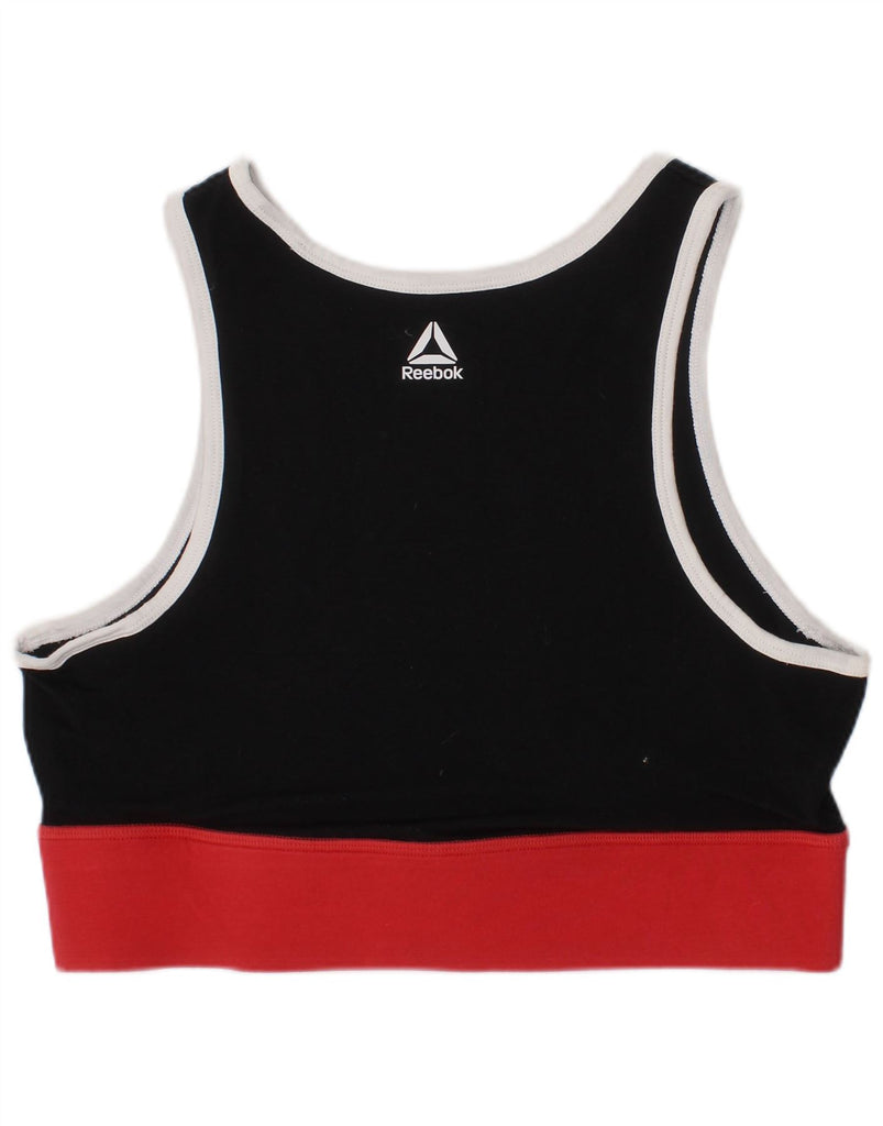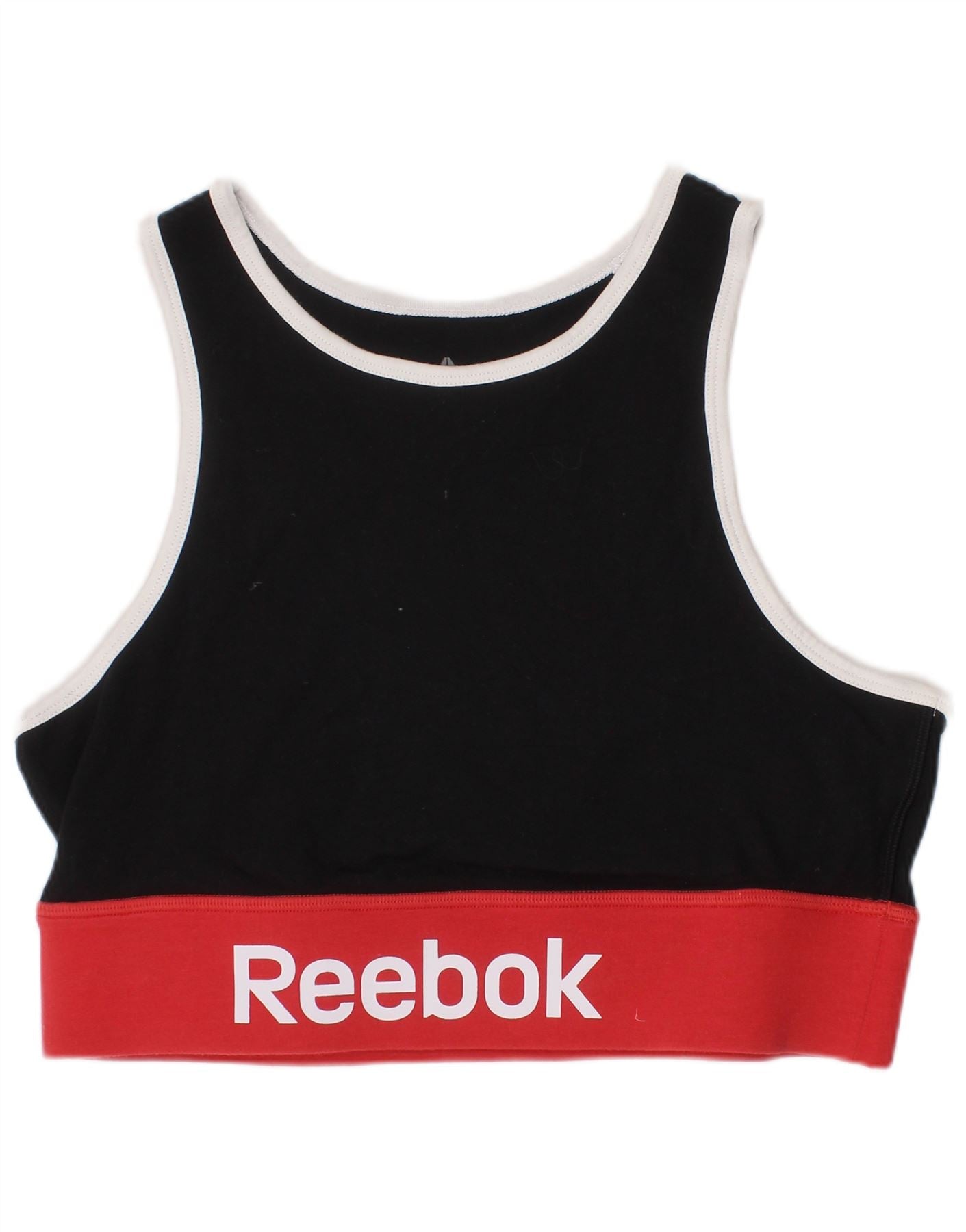 REEBOK Womens Sport Bra Graphic Vest Top UK 12/14 Medium Black Sports