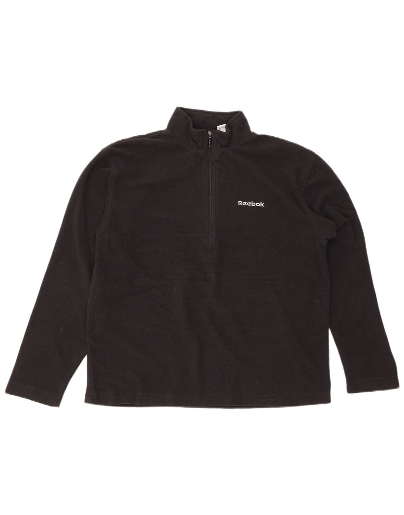 REEBOK Womens Zip Neck Fleece Jumper UK 14 Medium Black Polyester