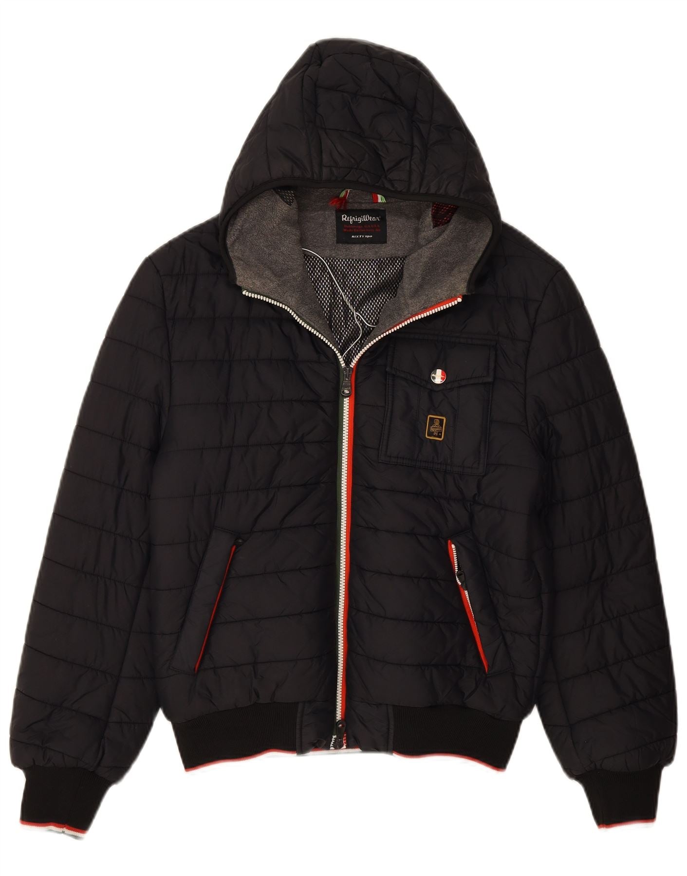 REFRIGIWEAR Mens Hooded Padded Jacket UK 38 Medium Navy Blue Polyester