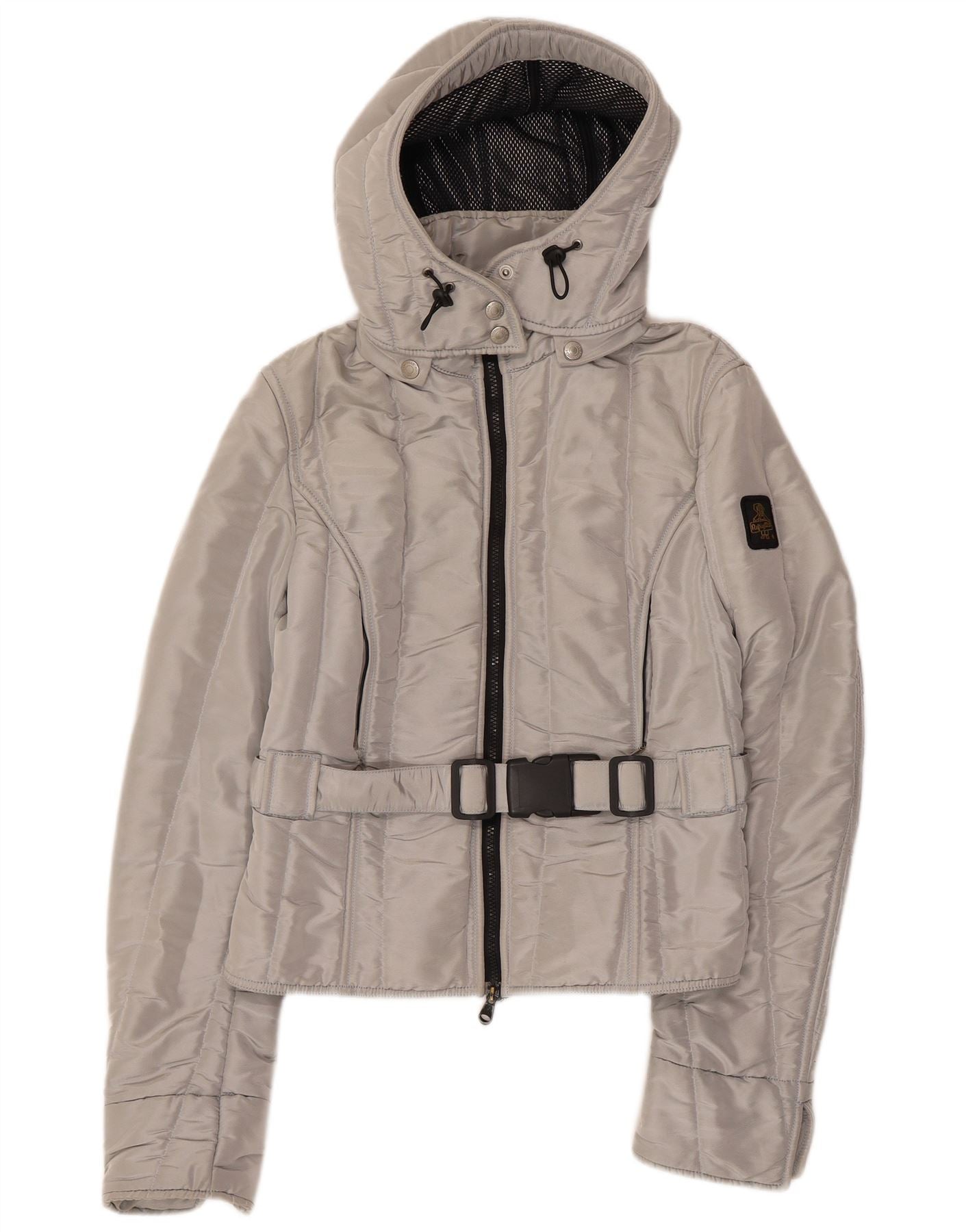 REFRIGIWEAR Womens Cruz Hooded Bomber Jacket UK 14 Large Silver Polyester