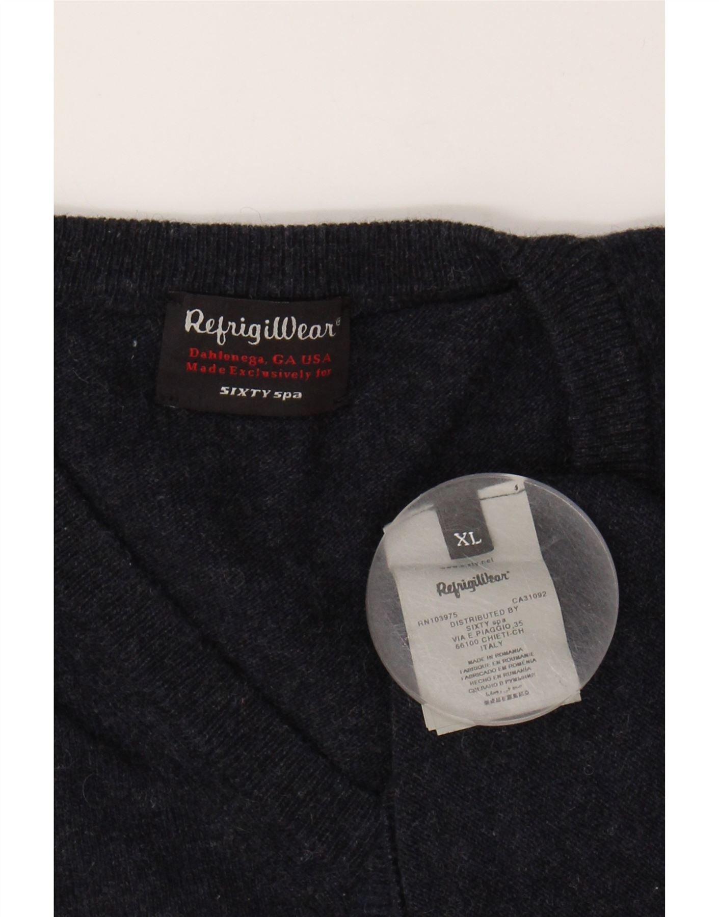 REFRIGIWEAR Womens V-Neck Jumper Sweater UK 18 XL Navy Blue Wool