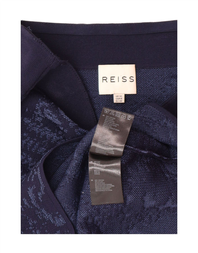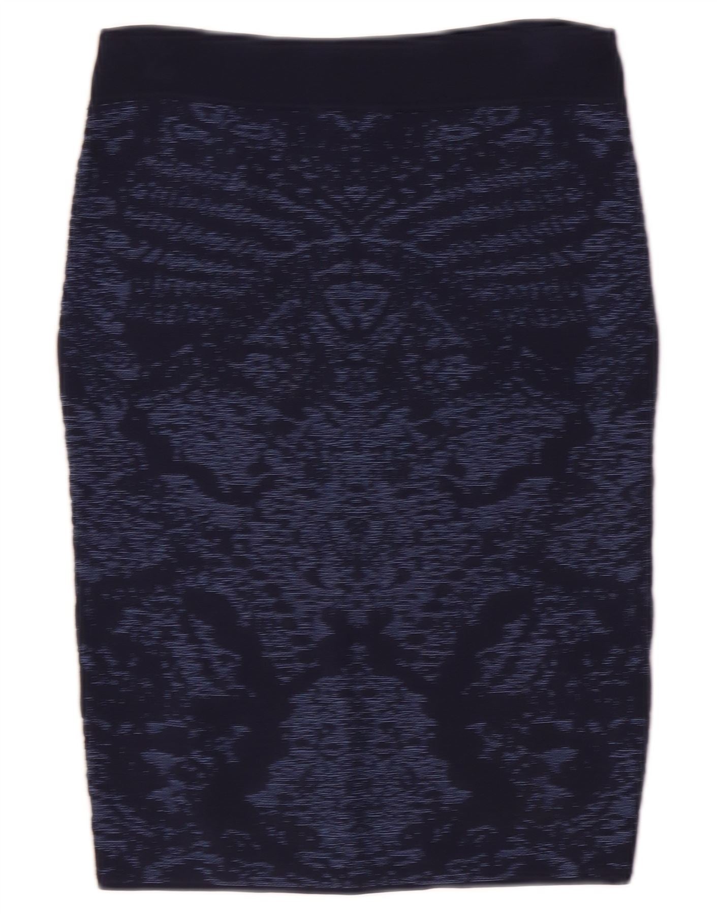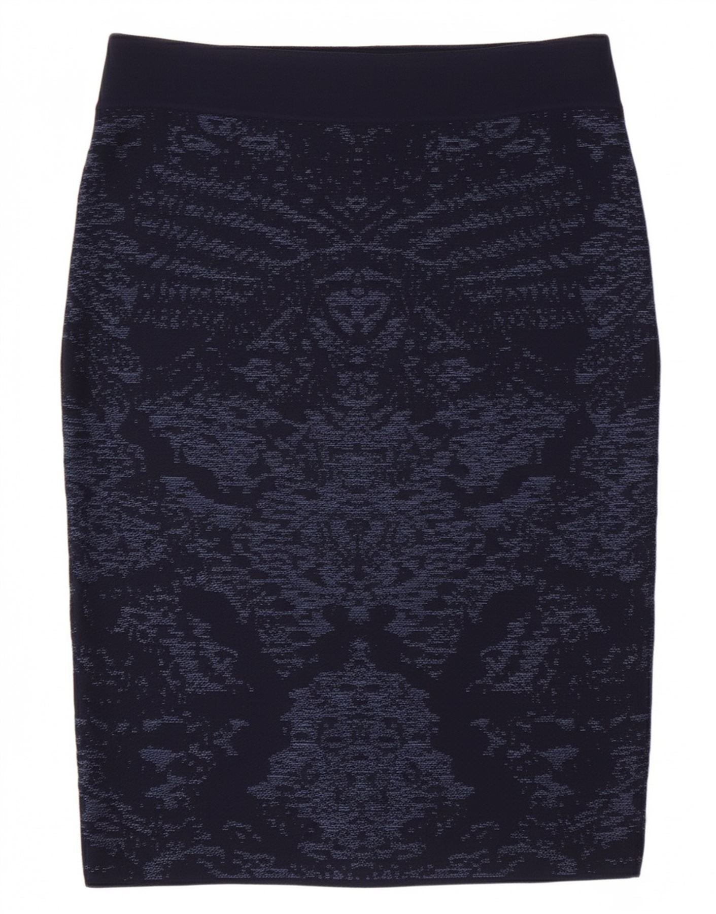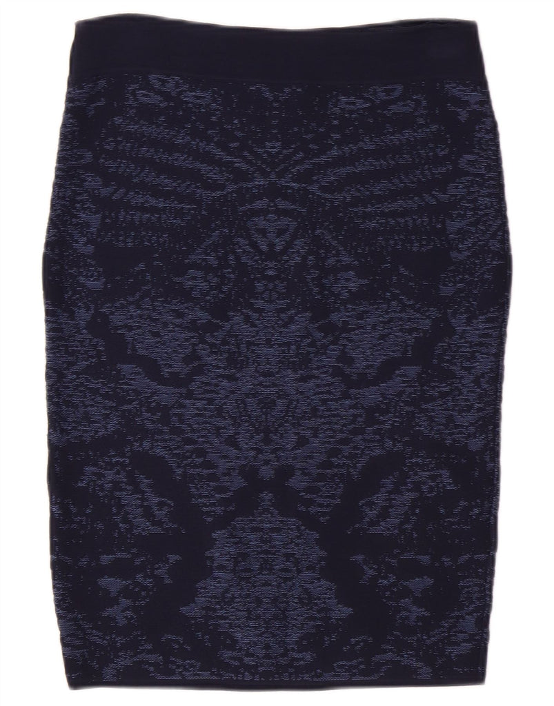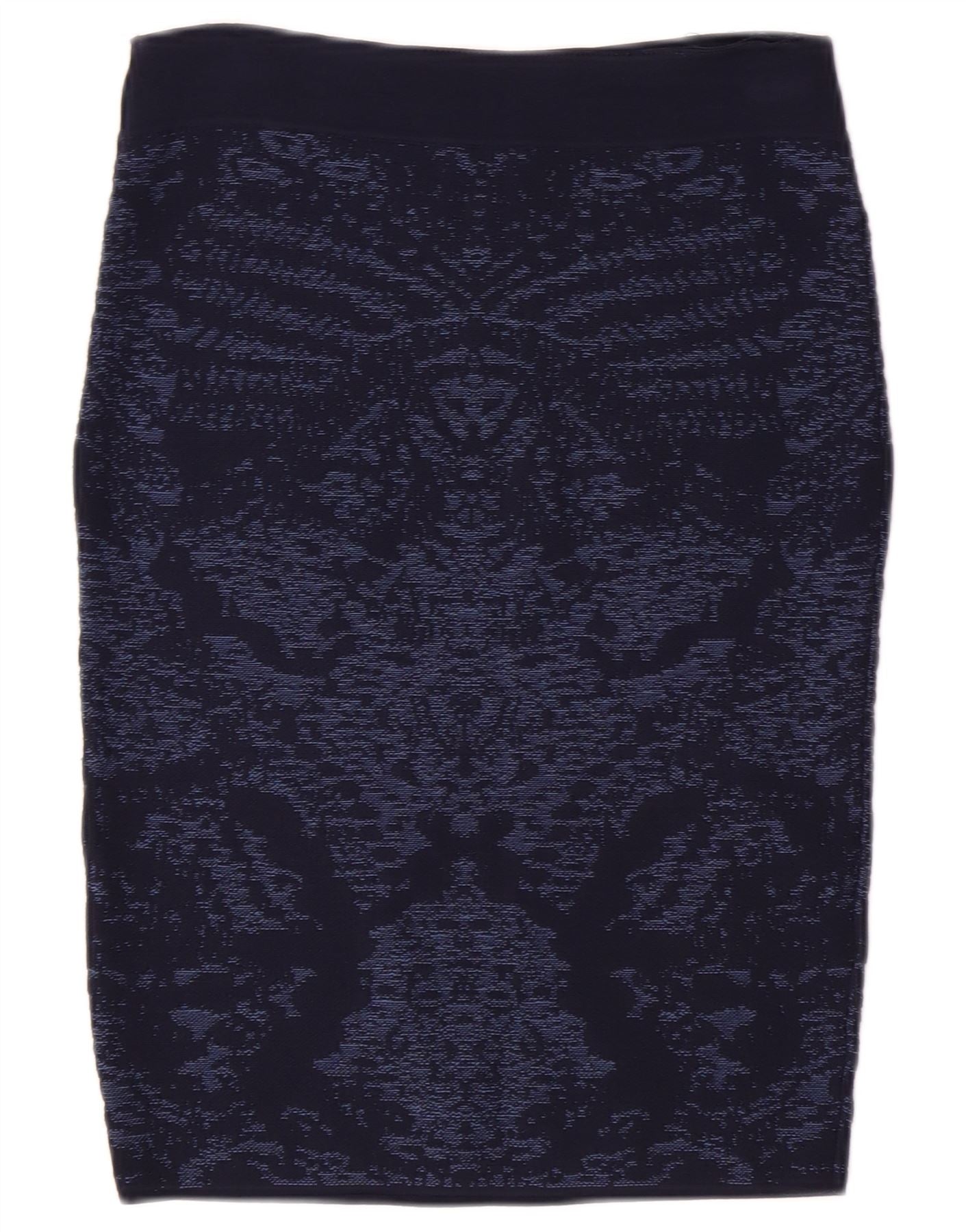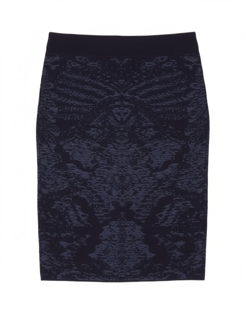REISS Womens Knit Abstract Pattern Pencil Skirt UK 10 Small W26 Navy Blue