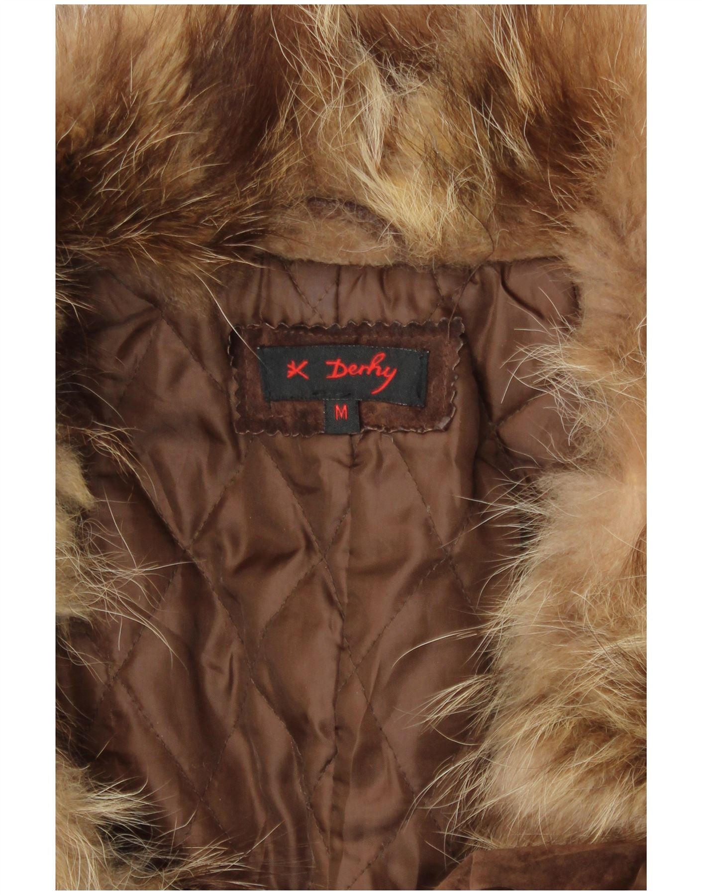 Rene Derhy Womens Suede Fur Overcoat UK 14 Medium Brown Leather