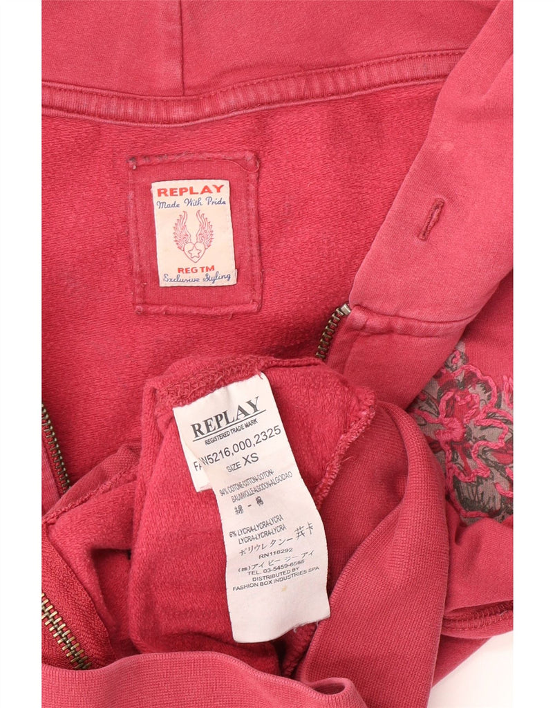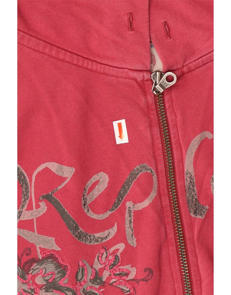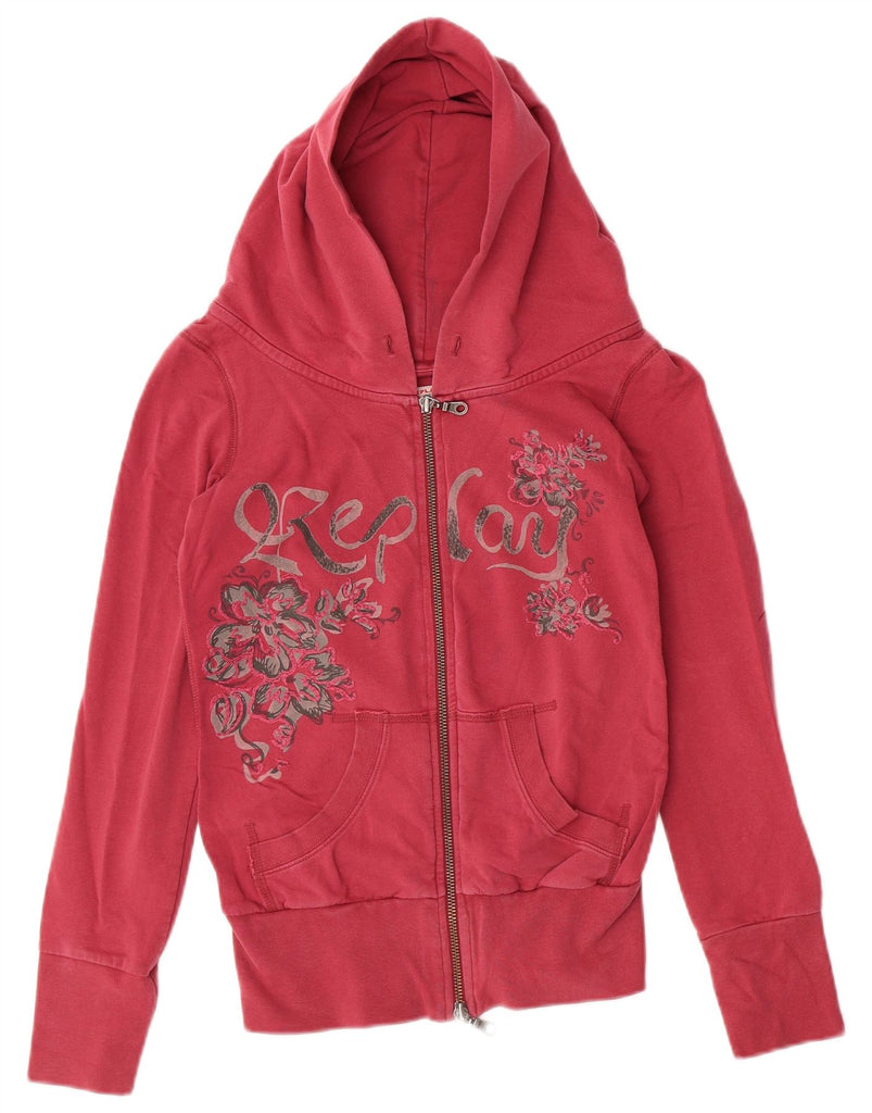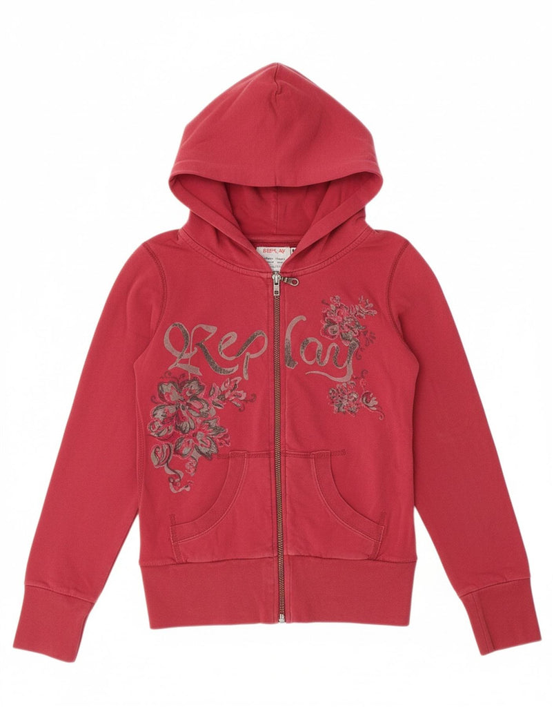 REPLAY Girls Graphic Zip Hoodie Sweater 11-12 Years XS Pink Floral Cotton