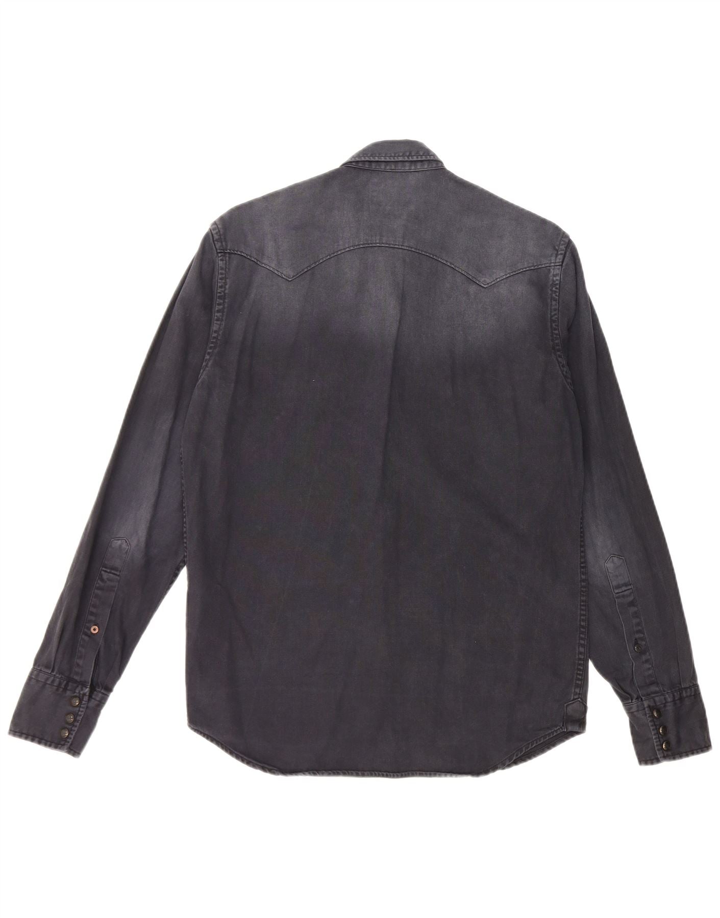 REPLAY Mens Garment Dyed Denim Shirt Medium Navy Blue Cotton
