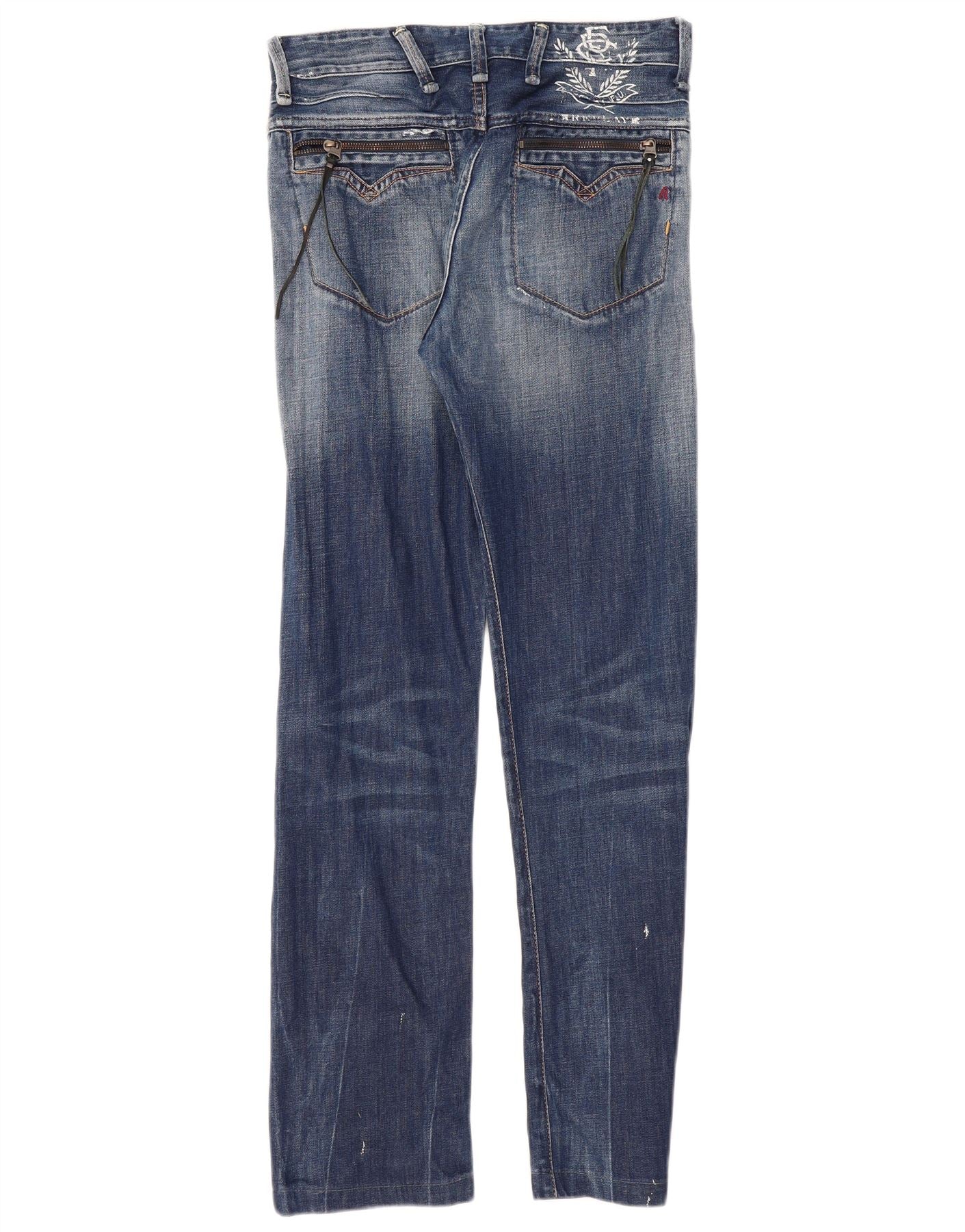 Replay Womens Graphic Straight Jeans W29 L30 Blue Cotton