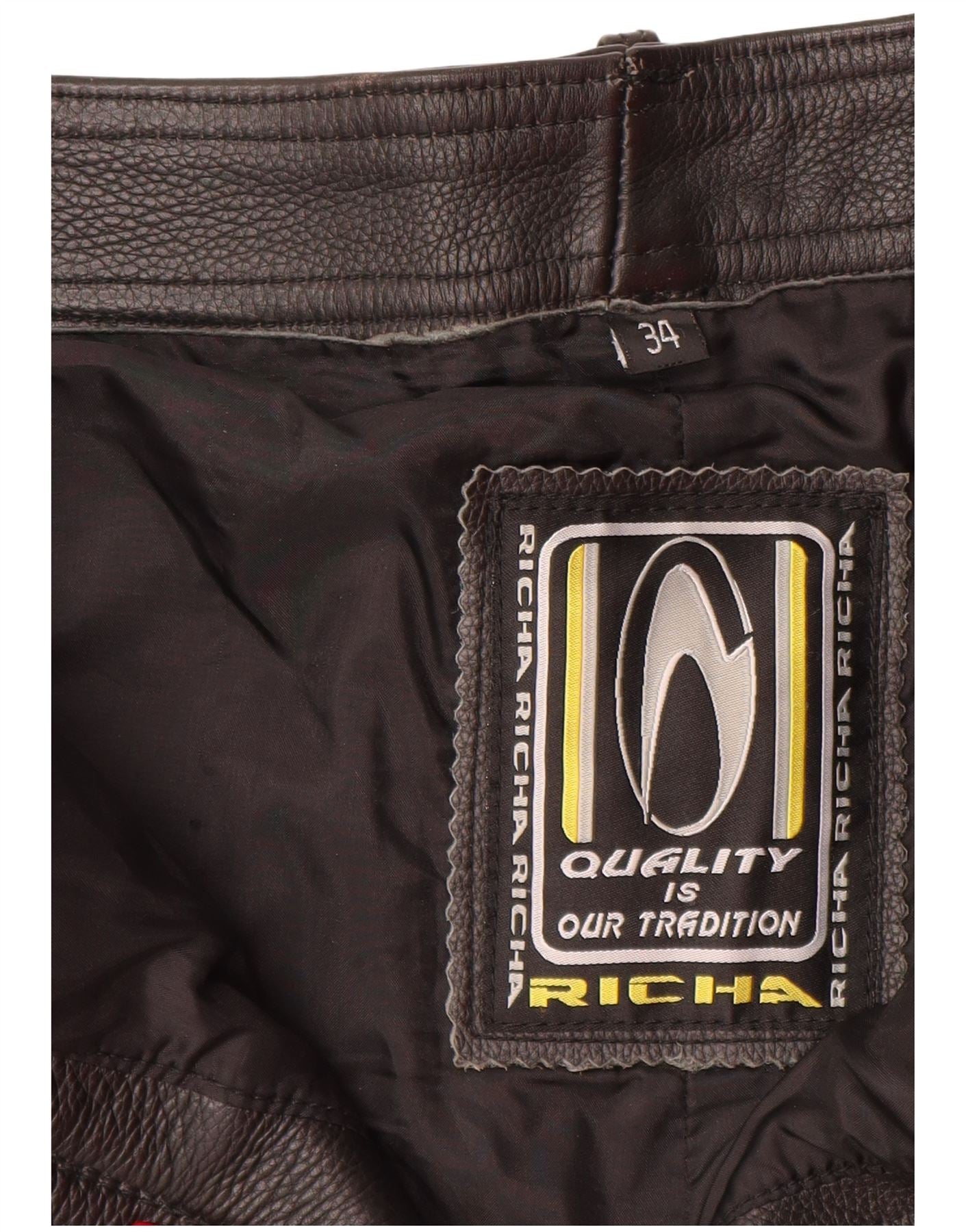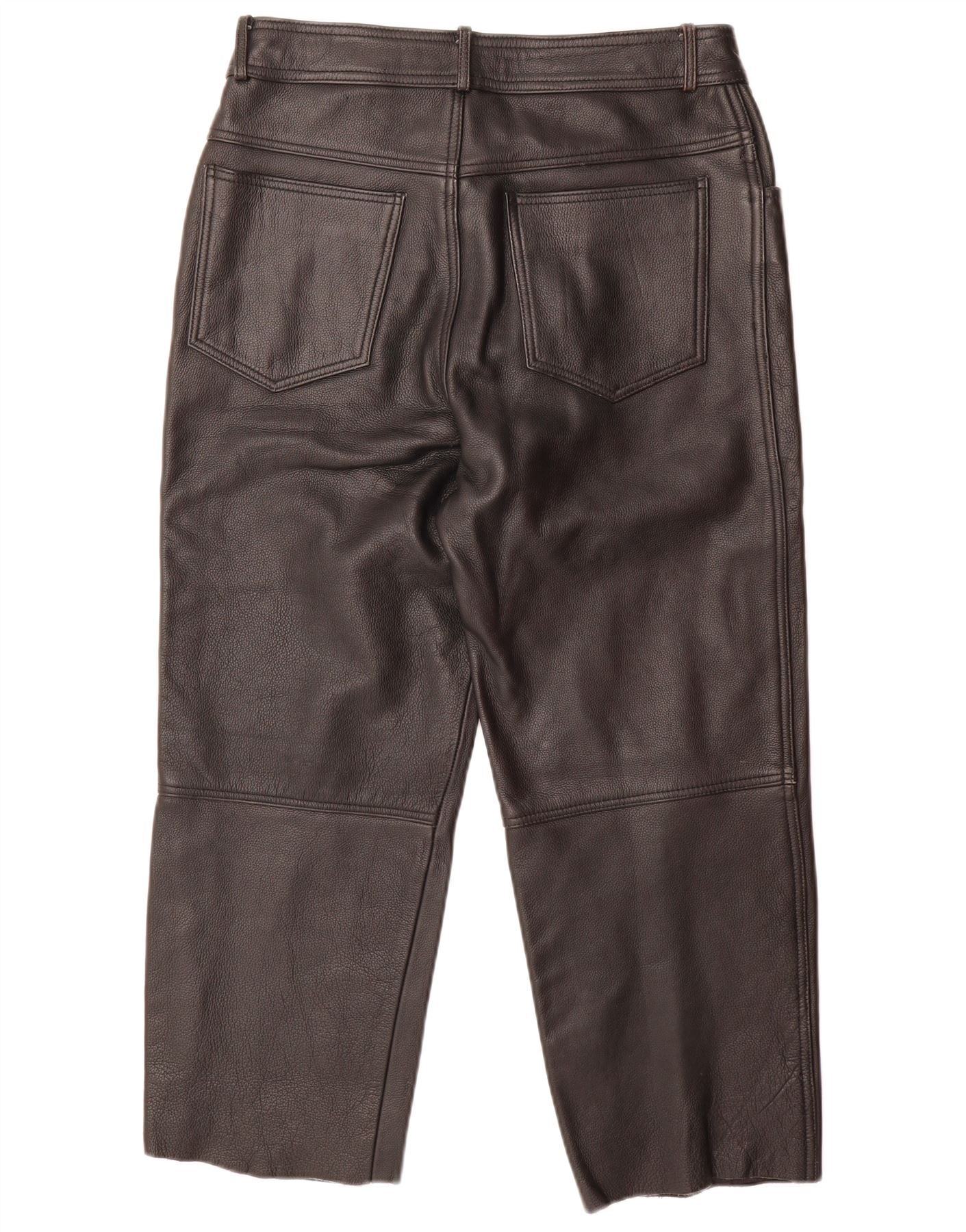 RICHA Womens High Waist Leather Cropped Trousers W34 L25 Black Leather
