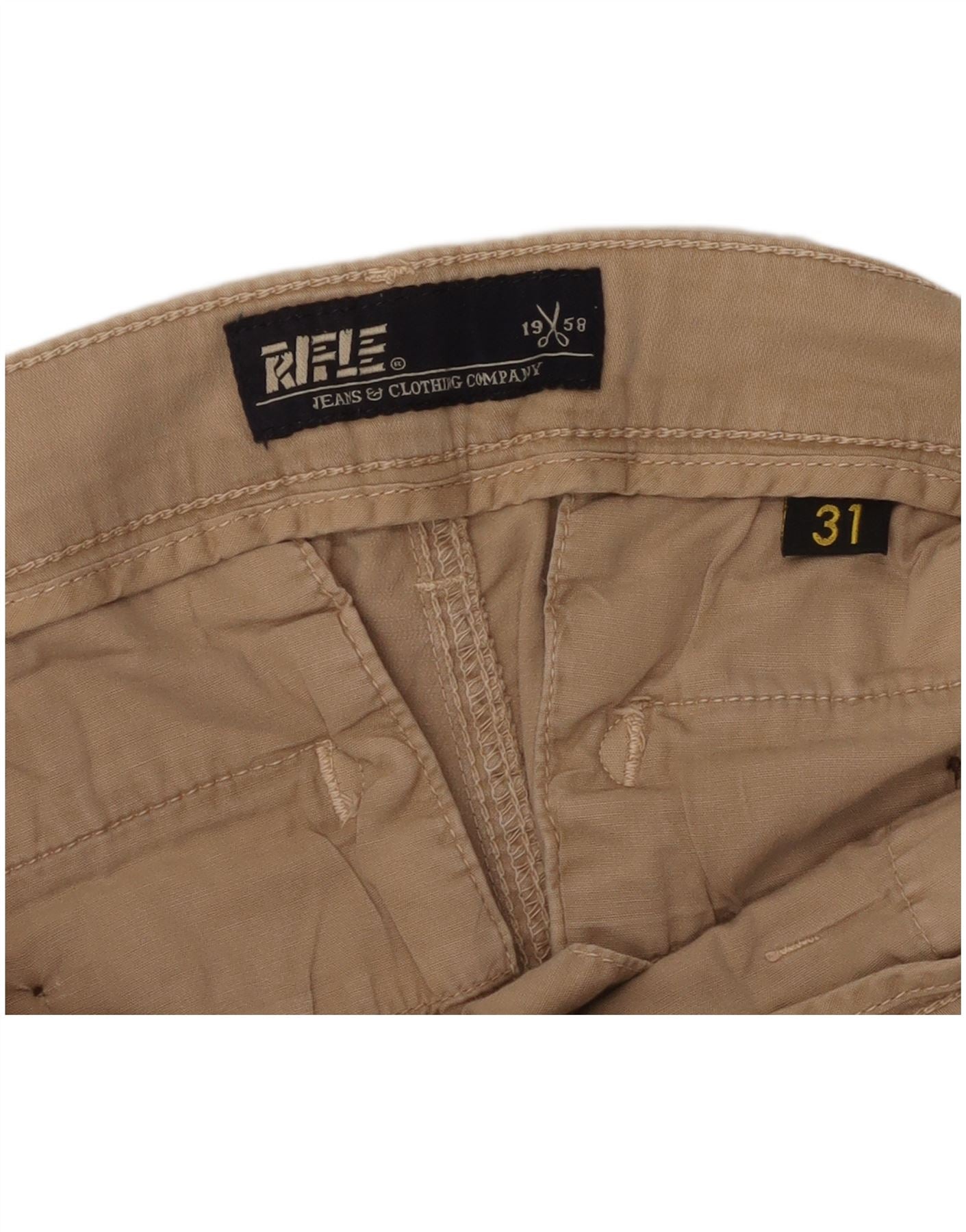 RIFLE Mens Slim Cargo Trousers W31 L30 Beige