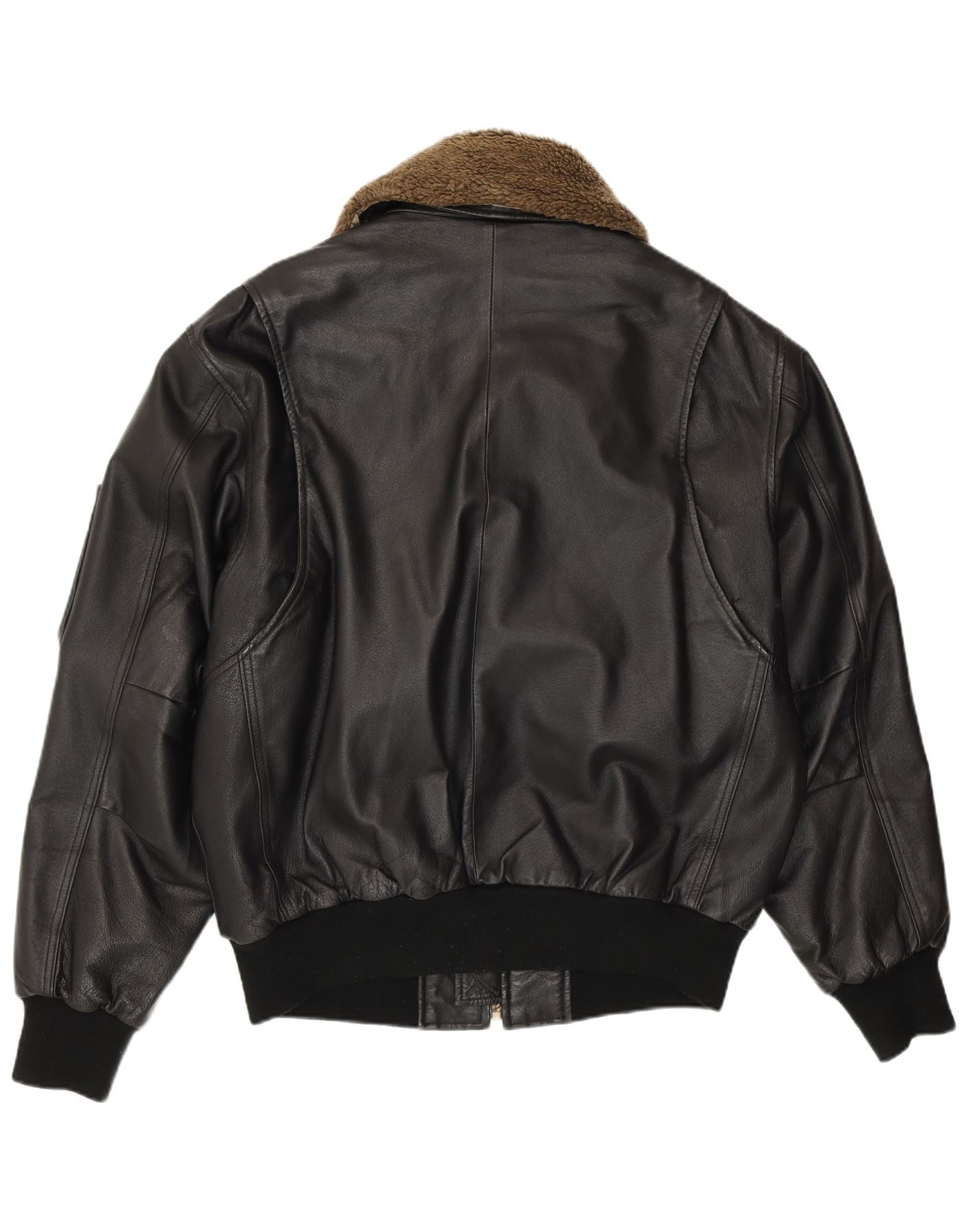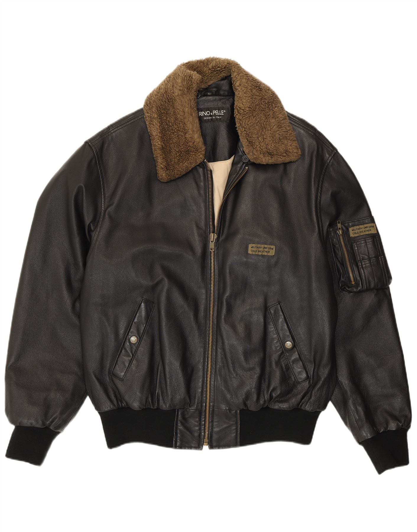 RINO & PELLE Mens Leather Flight Aviator Jacket IT 52 XL Black Leather