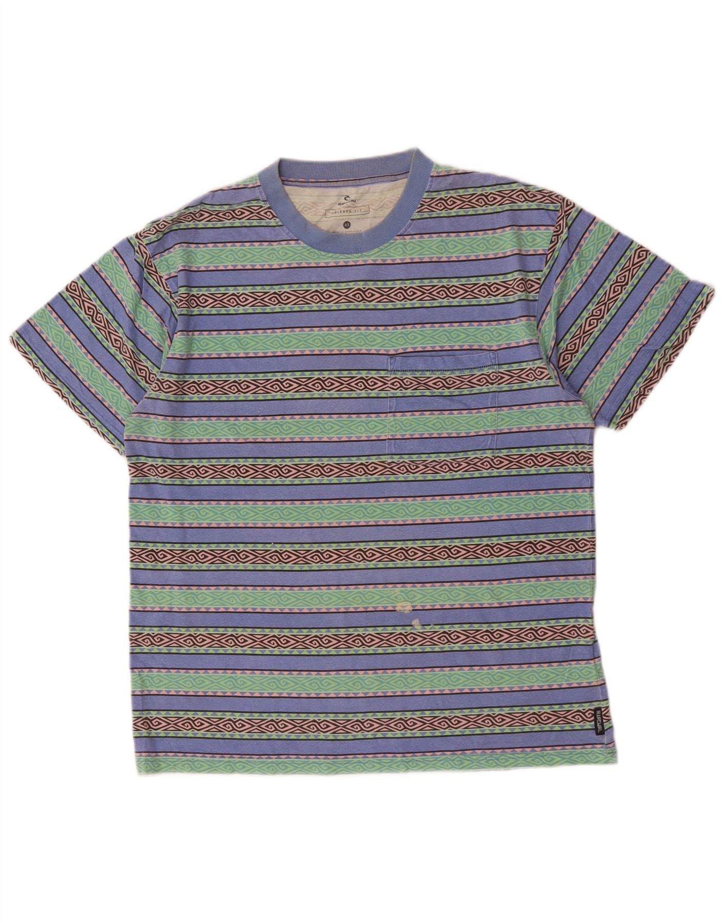 RIP CURL Mens Relaxed Fit T-Shirt Top XS Multicoloured Geometric Cotton