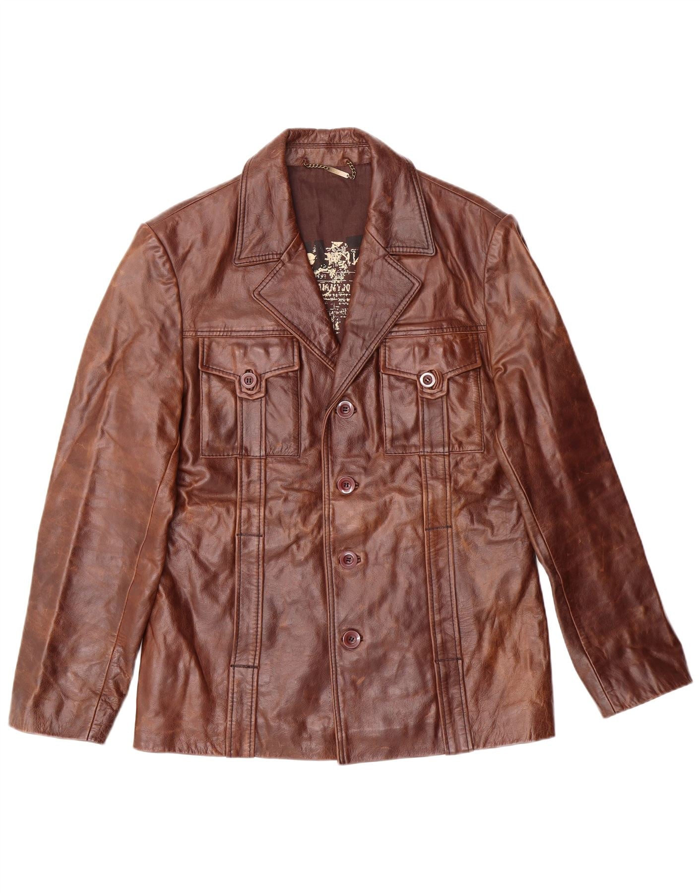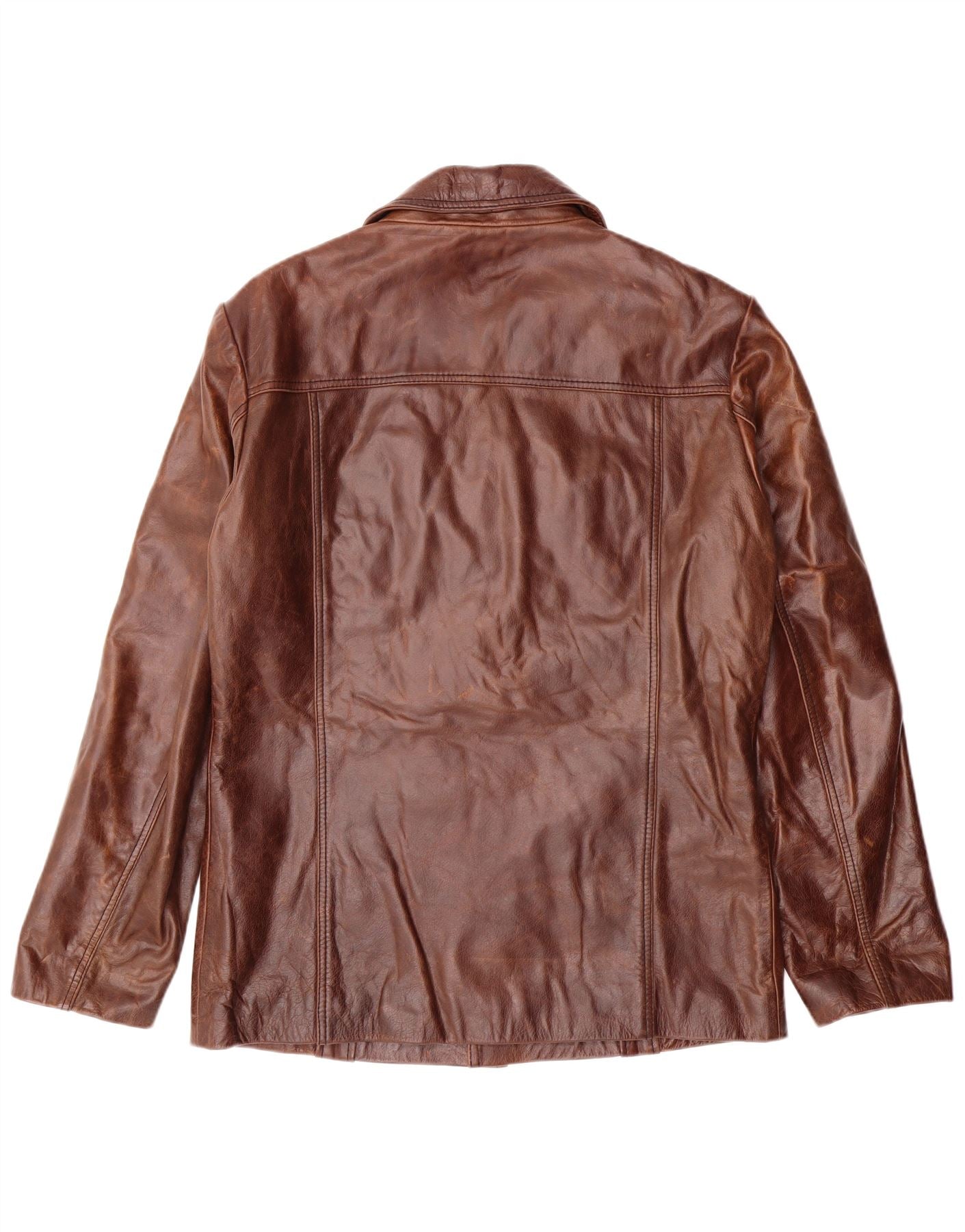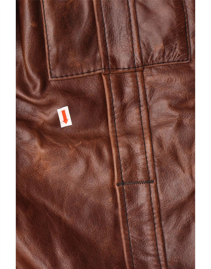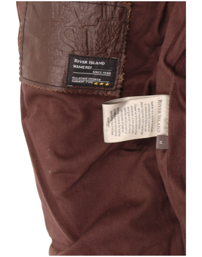 RIVER ISLAND Mens Leather Jacket UK 38 Medium Brown Leather