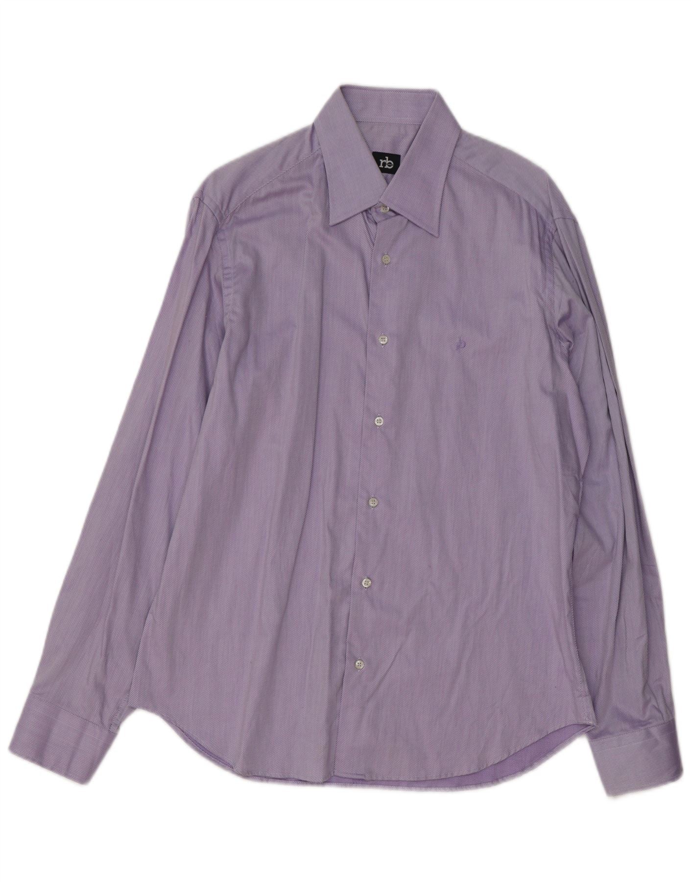 ROCCOBAROCCO Mens Shirt Size 41 16 Large Purple Pinstripe Cotton