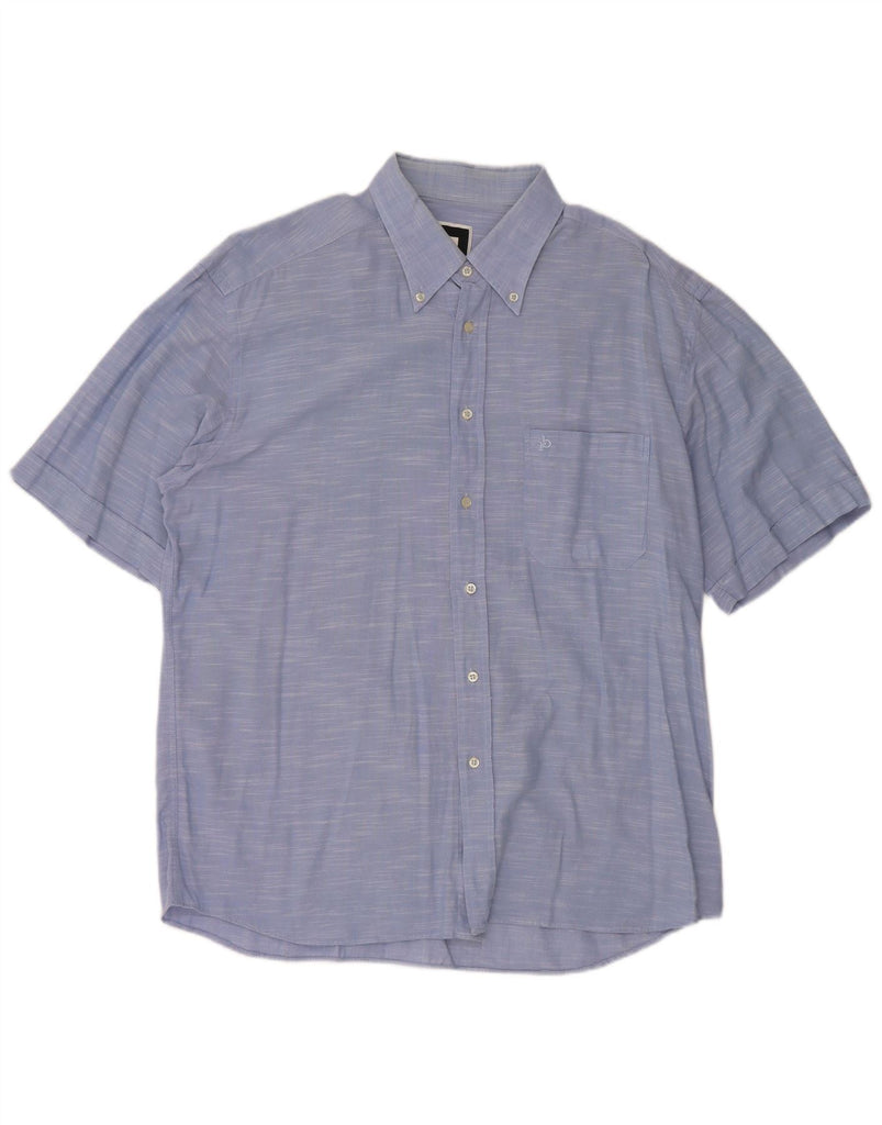 ROCCOBAROCCO Mens Short Sleeve Shirt Size 17 43 XL Blue Flecked Cotton