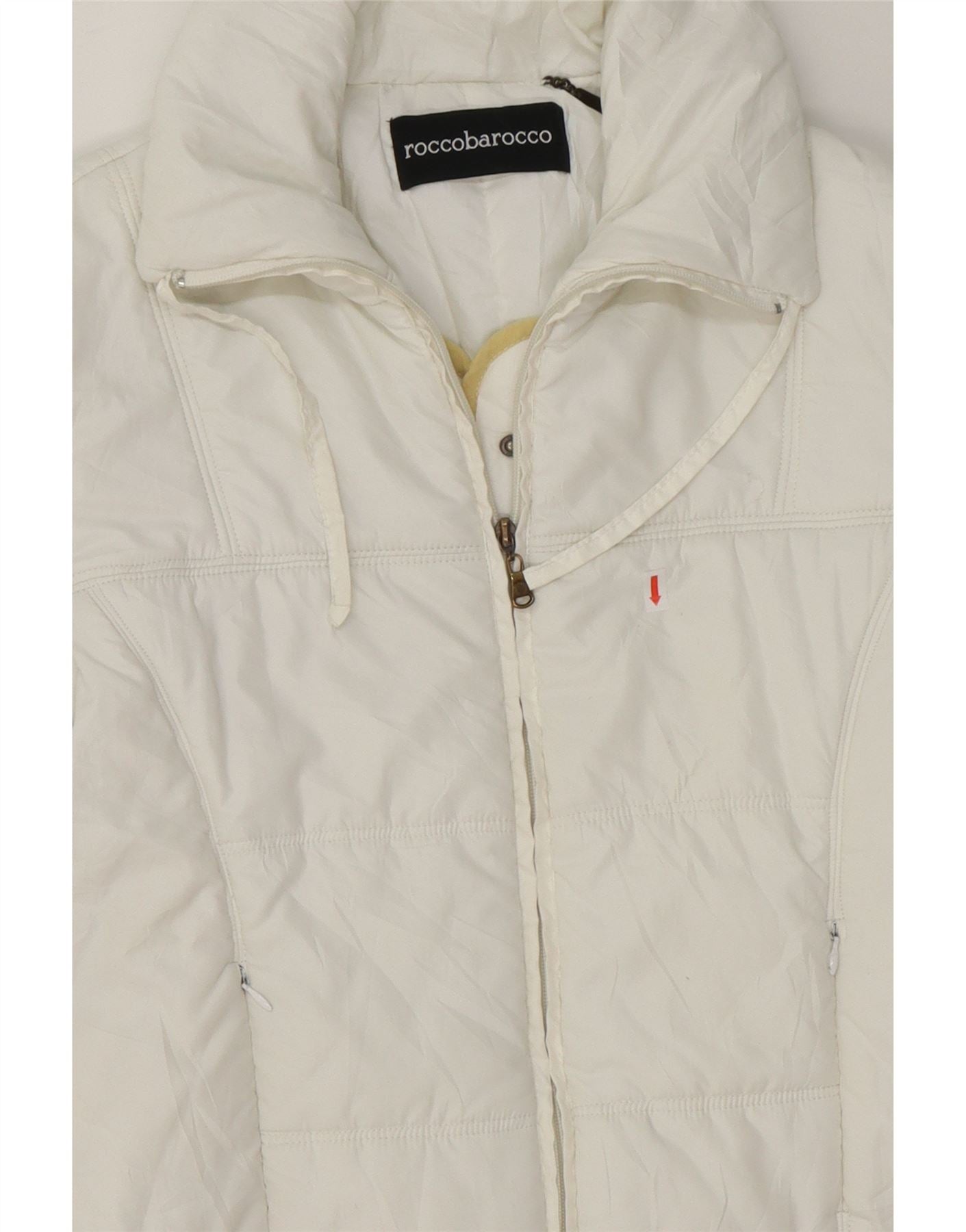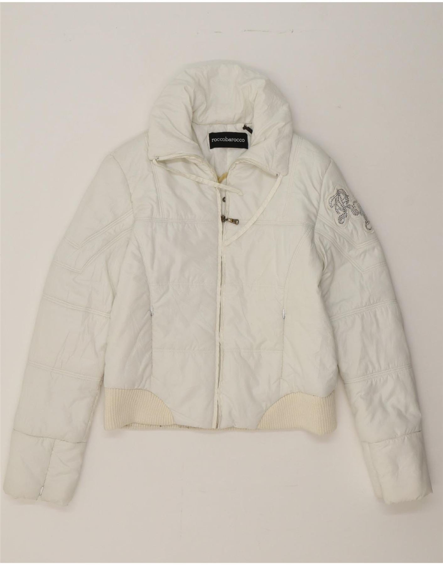 ROCCOBAROCCO Womens Graphic Padded Jacket US 8 Medium White Polyester