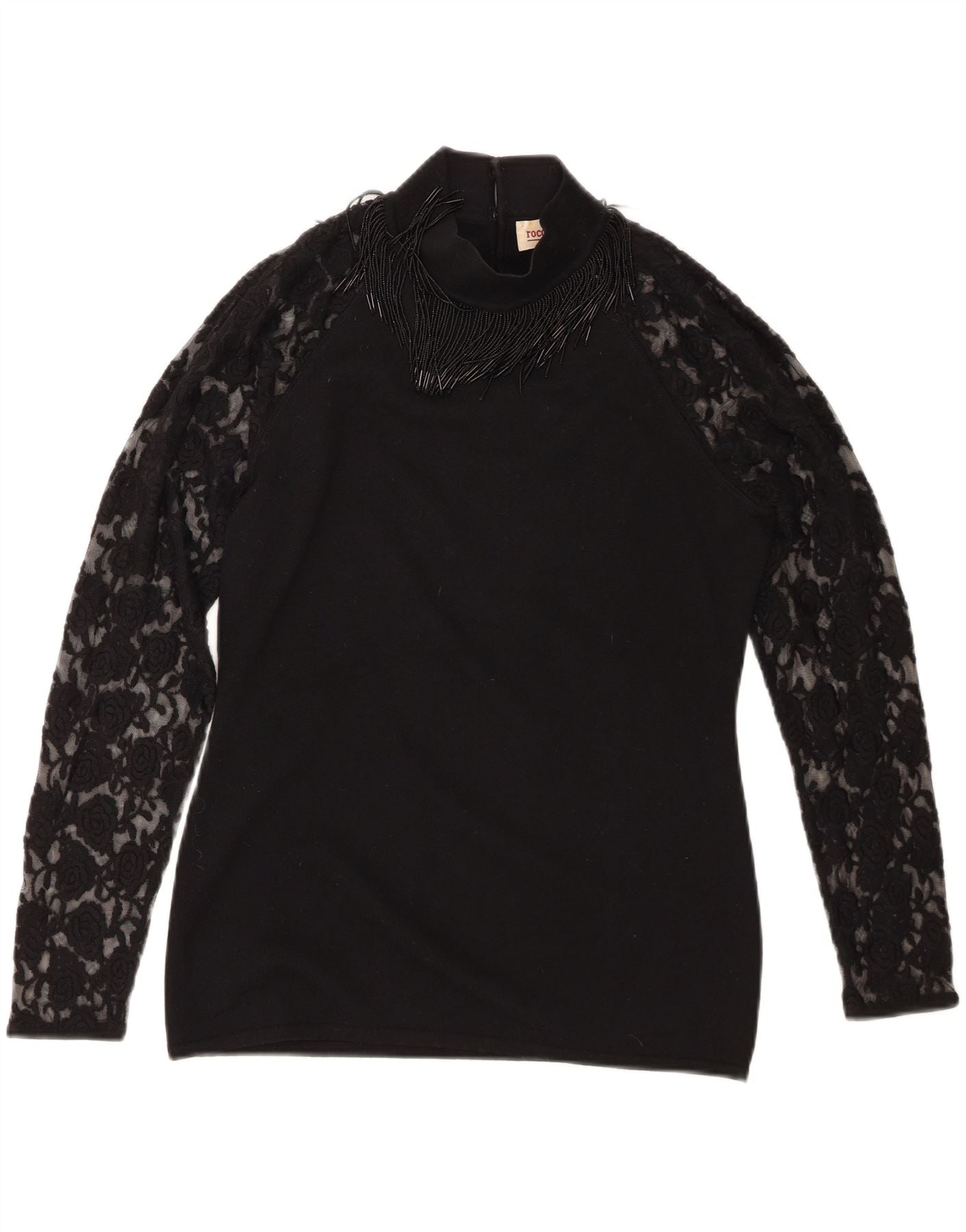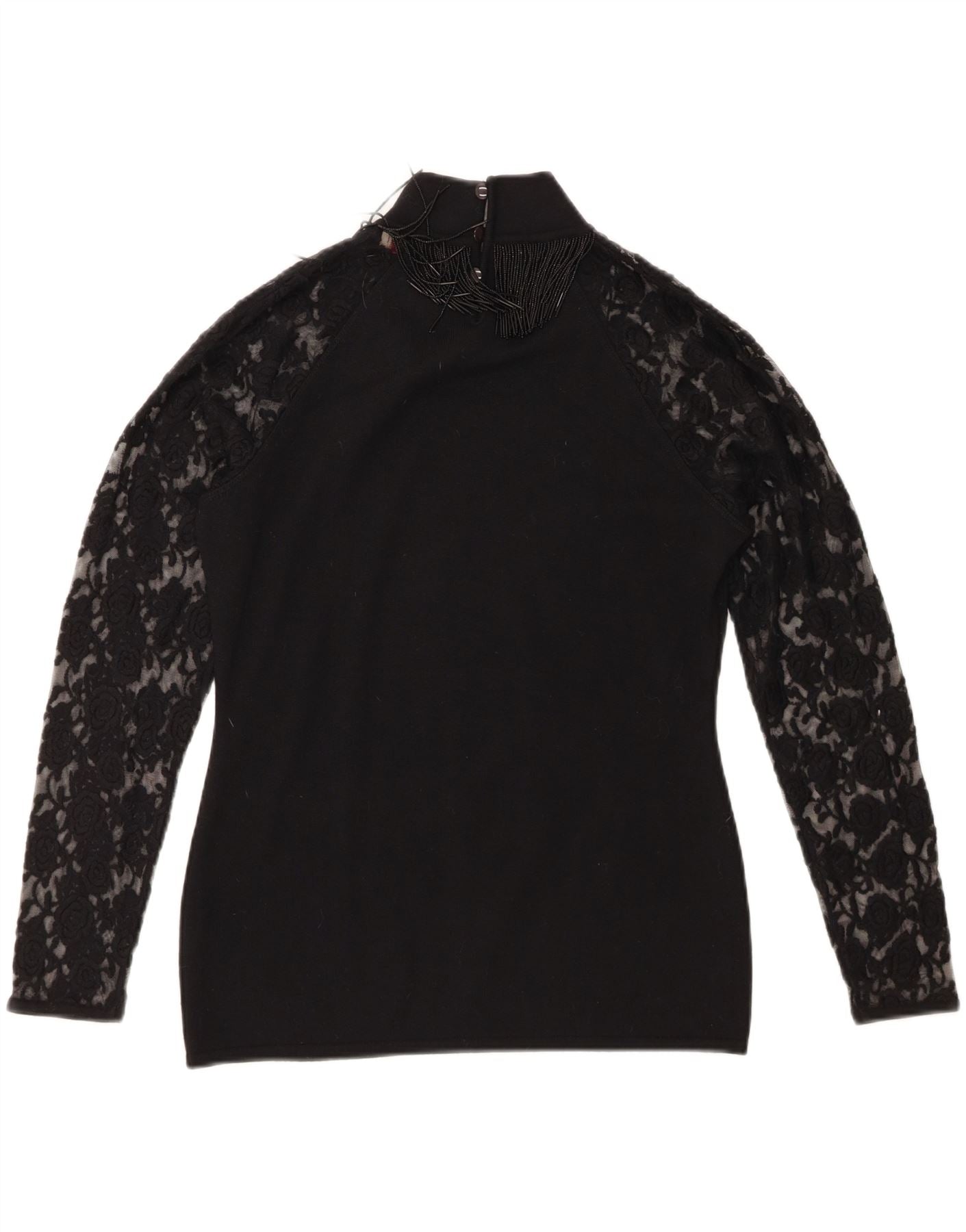 Roccobarocco Womens Top Long Sleeve UK 14 Medium Black Merino Wool