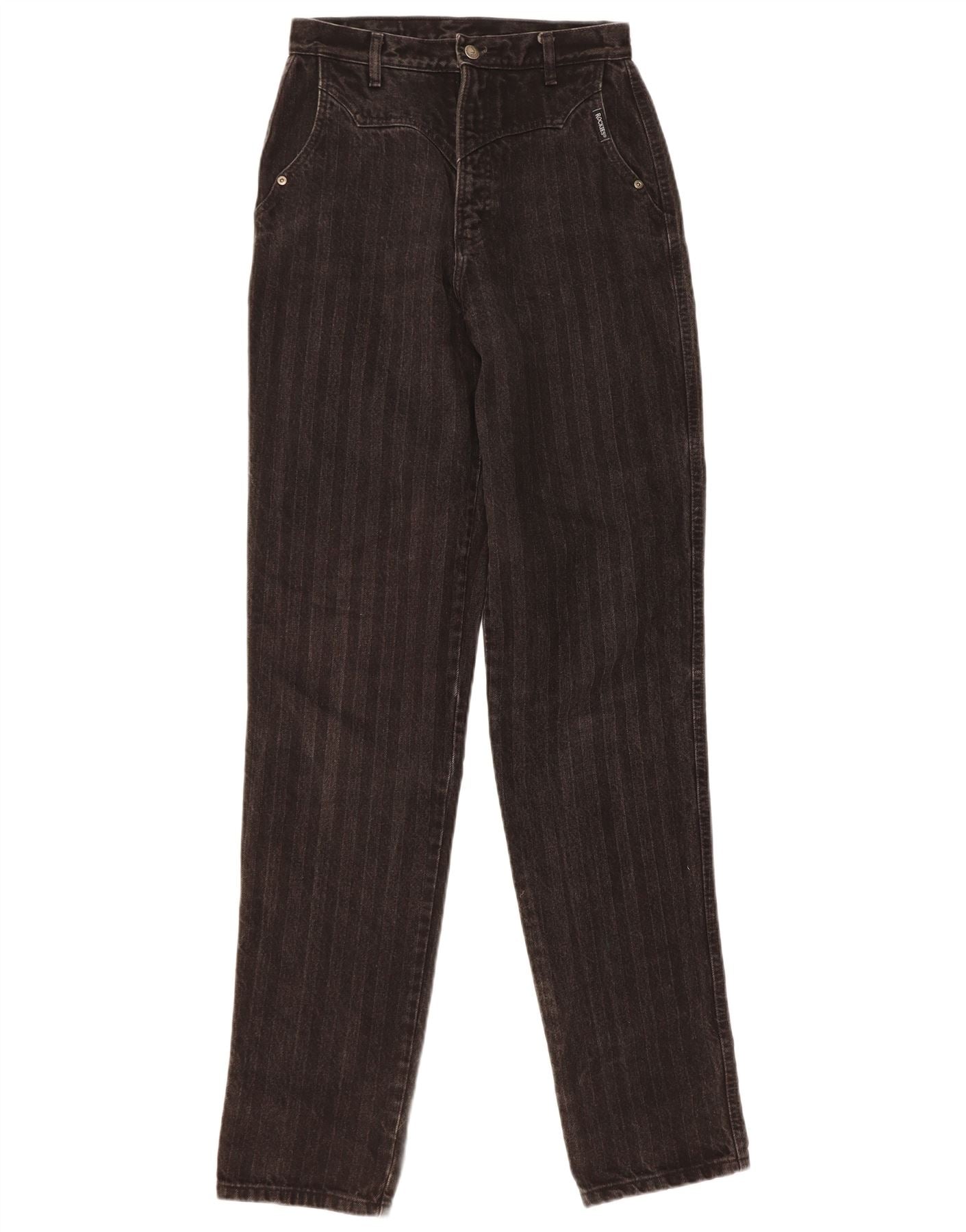 ROCKY MOUNTAIN Womens High Waist Slim Jeans W28 L37 Black Pinstripe Cotton