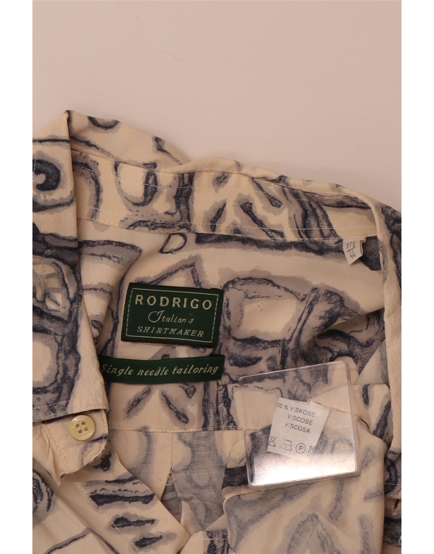 RODRIGO Mens Short Sleeve Shirt Size 17 1/2 44 XL White Geometric Viscose