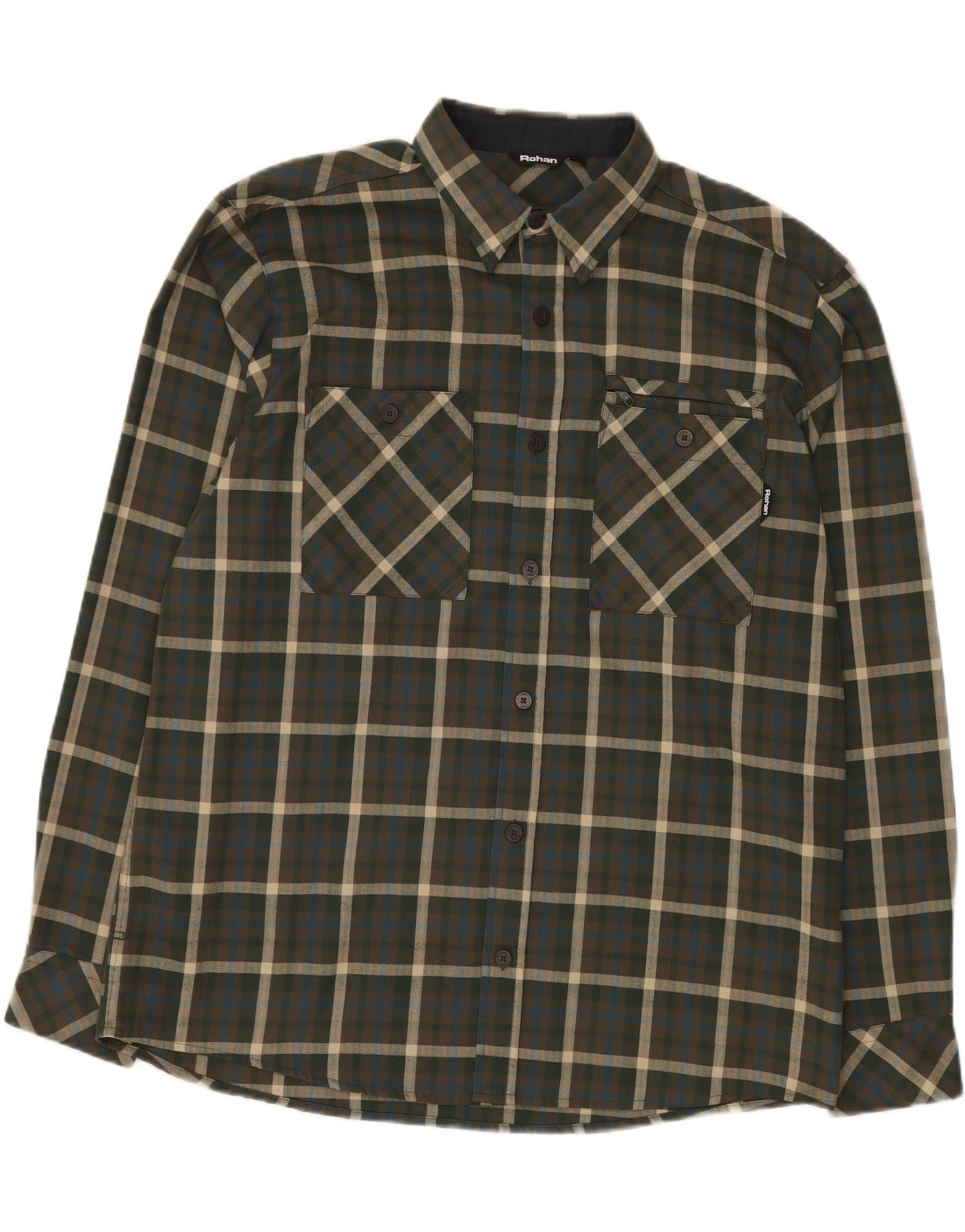ROHAN Mens Flannel Shirt Large Khaki Plaid Polyester