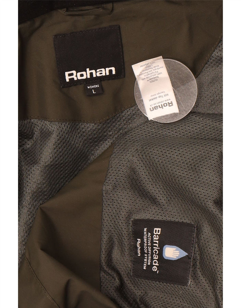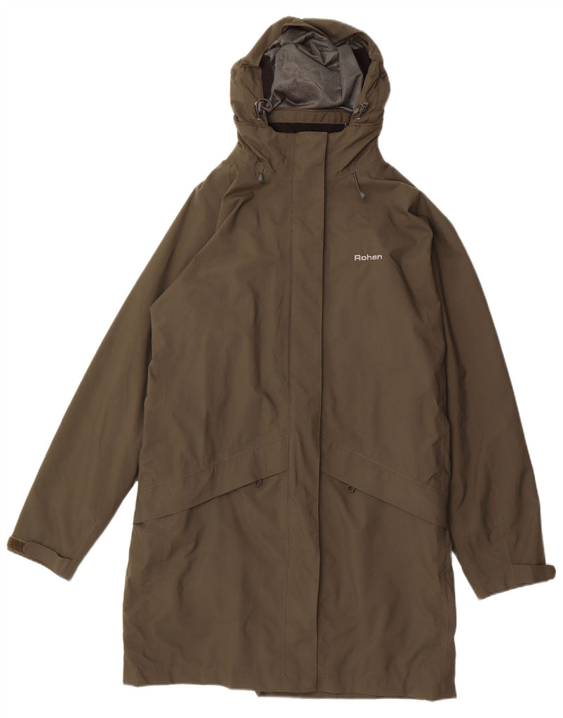 ROHAN Womens Hooded Raincoat UK 16 Large Khaki Polyamide