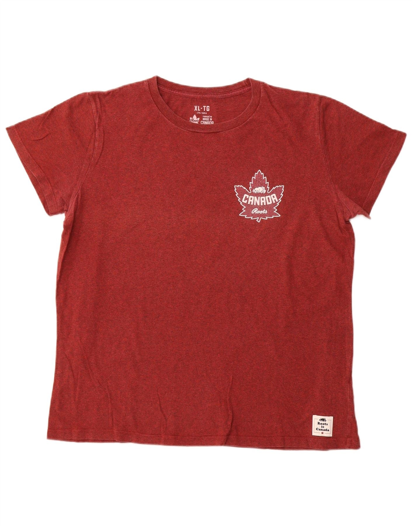 Roots Womens Canada Graphic T-Shirt Top XL Burgundy Flecked Cotton