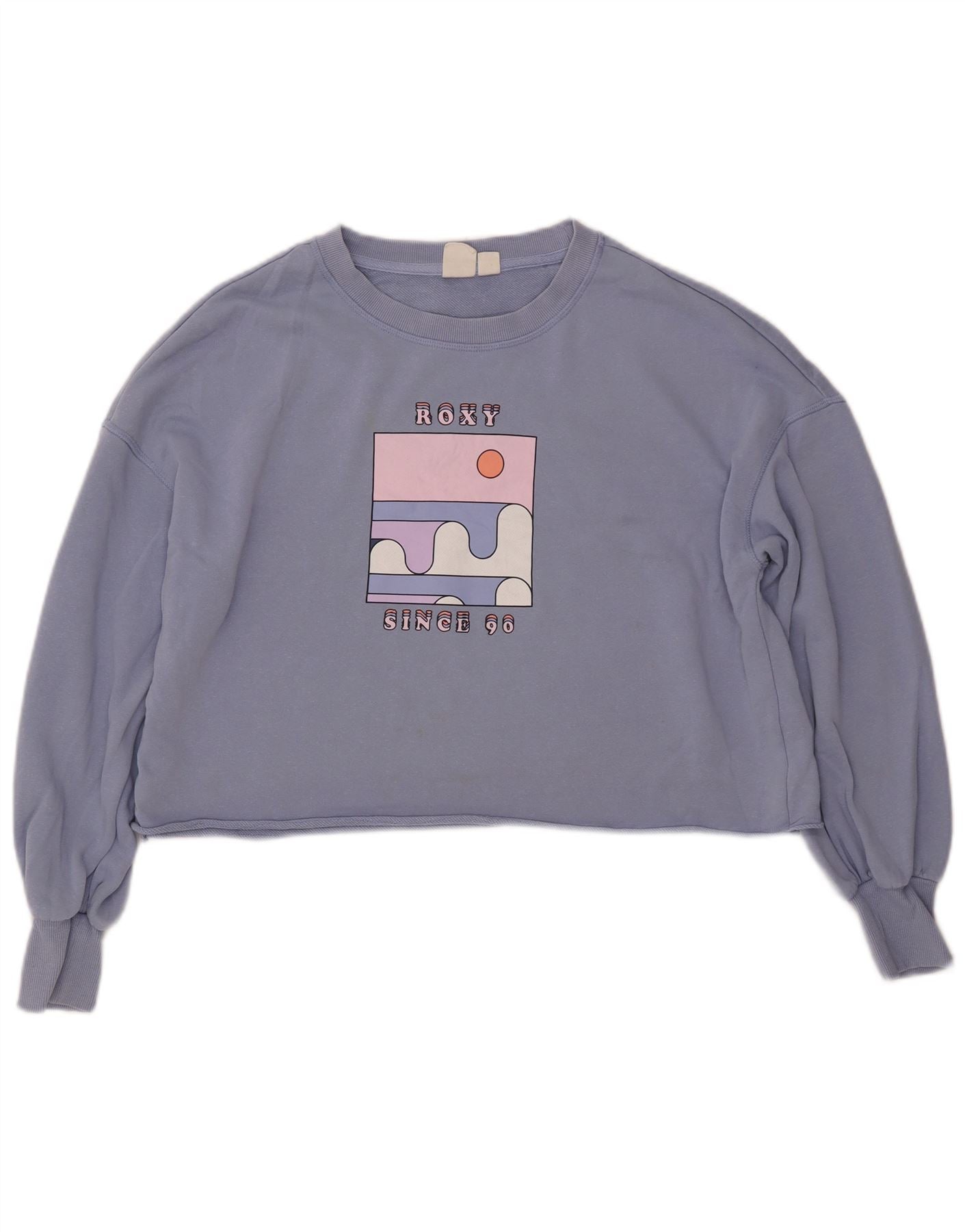 ROXY Womens Oversized Crop Graphic Sweatshirt Jumper UK 16 Large Blue