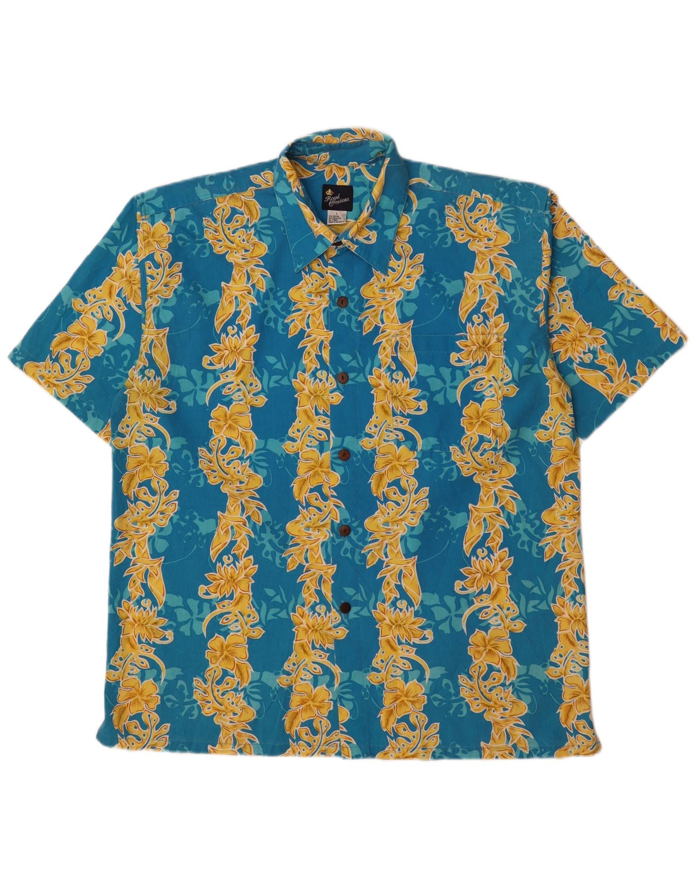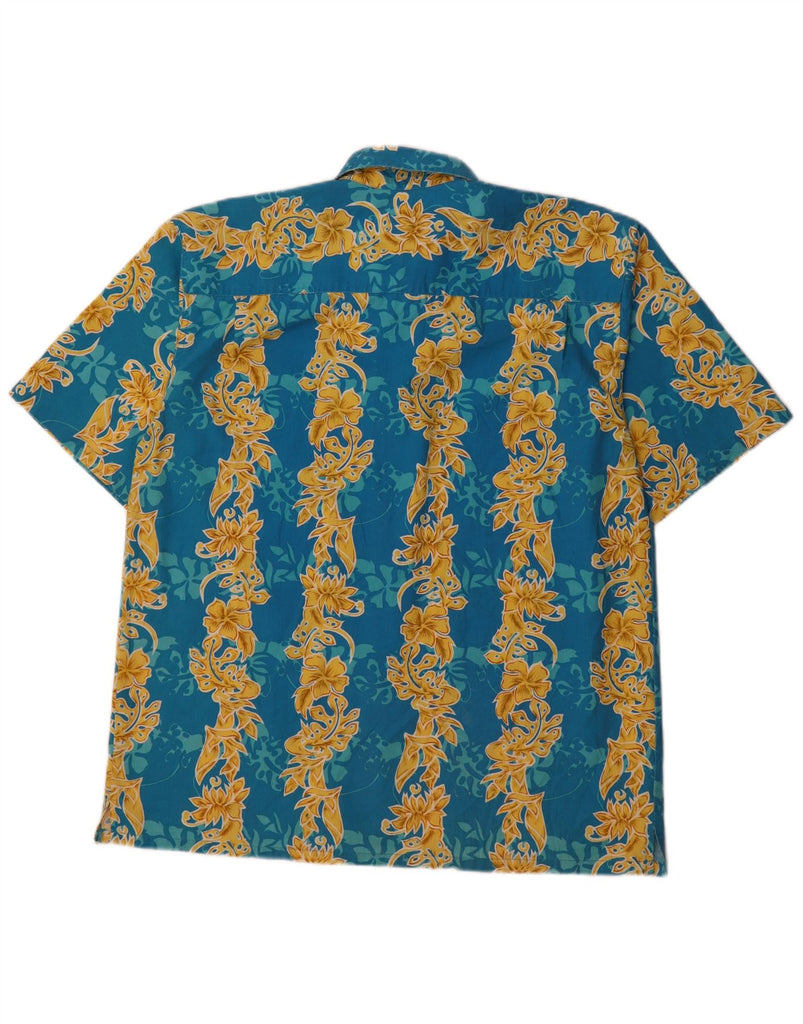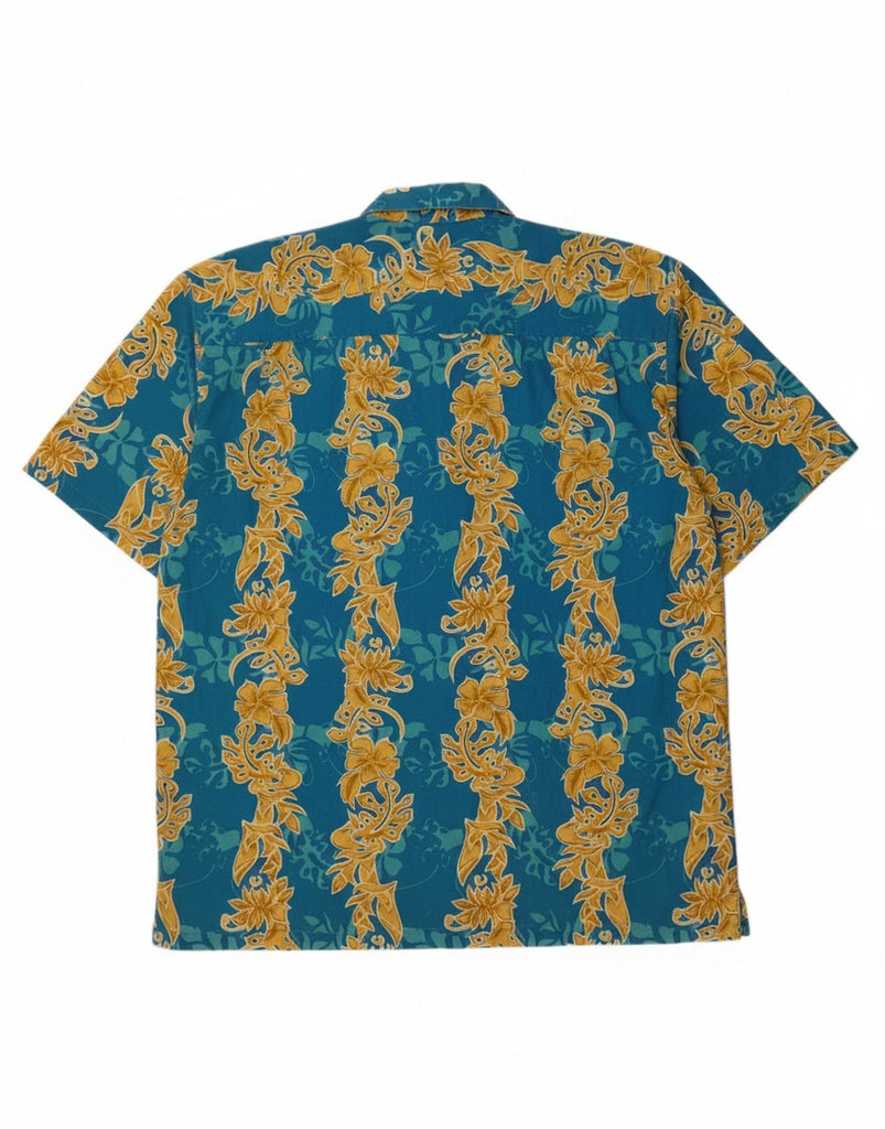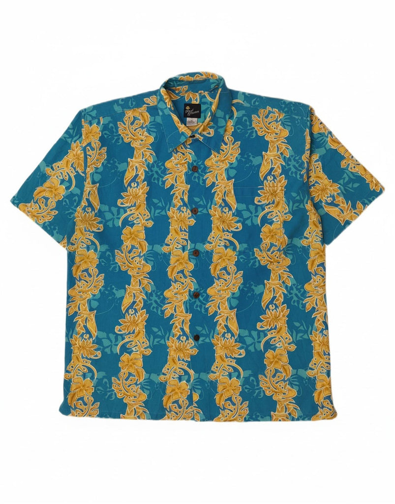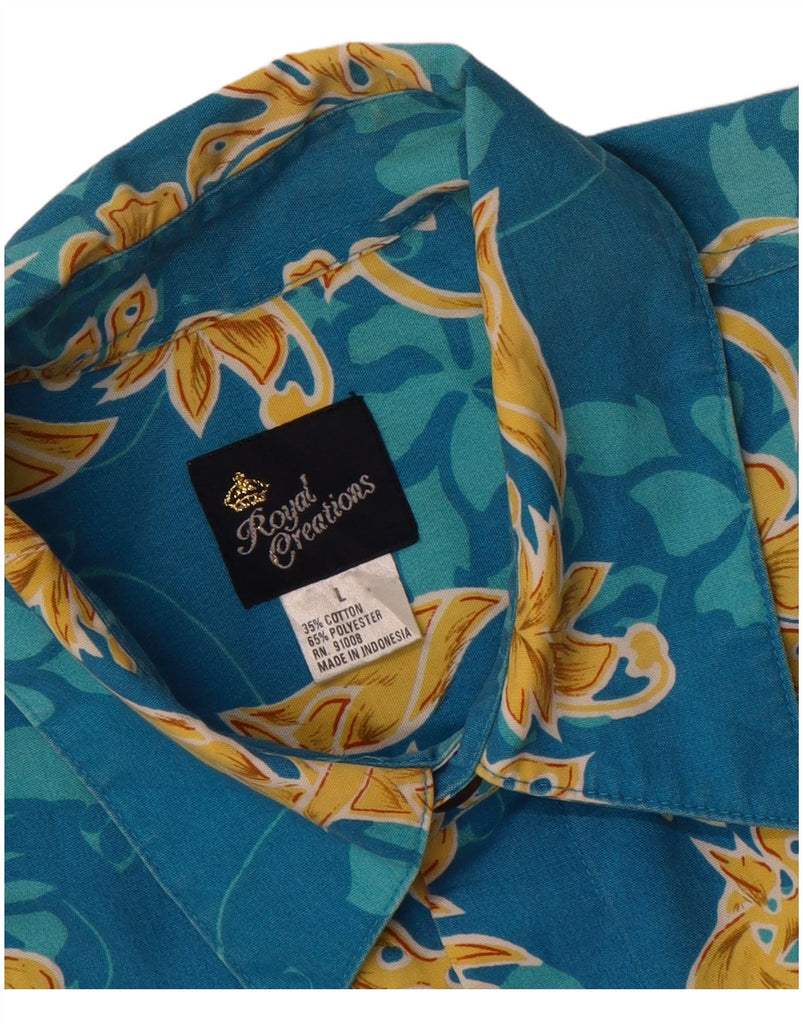 ROYAL CREATION Mens Short Sleeve Shirt Large Blue Floral Polyester